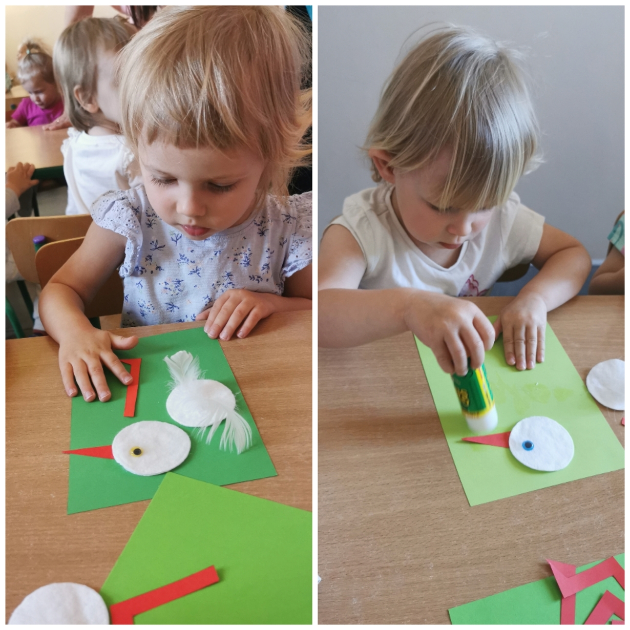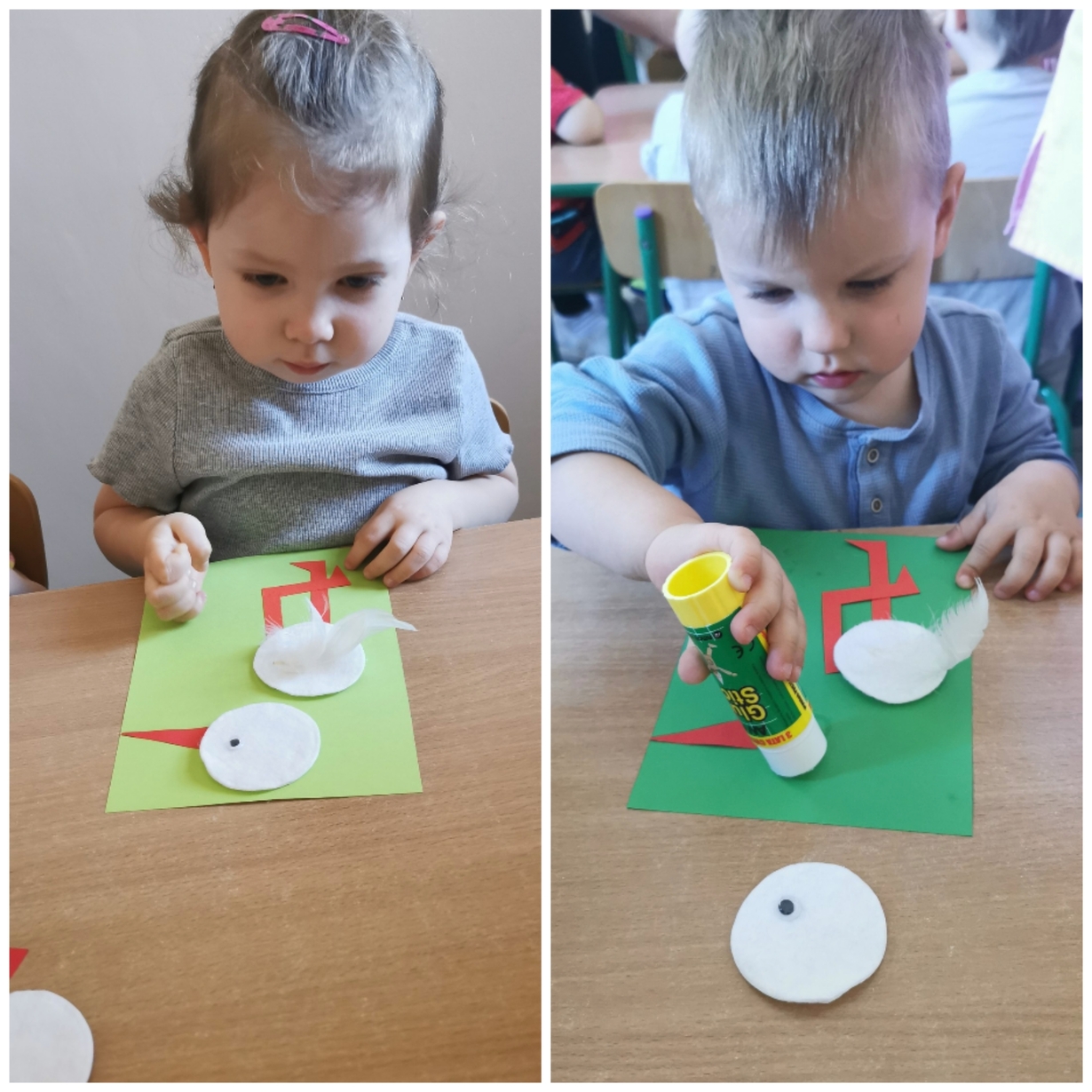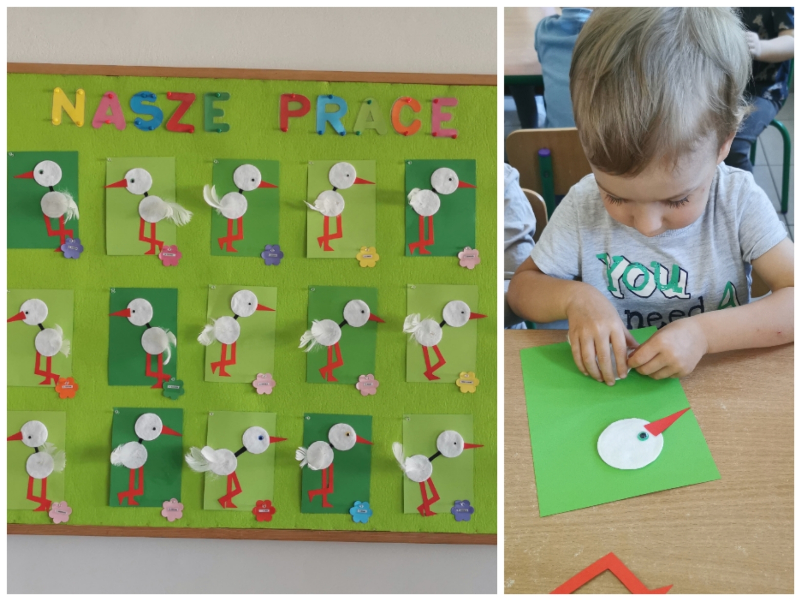 Biedronki posiadają niezwykły talent artystyczny, który można podziwiać od dłuższego czasu. Kolejnymi pracami, jakie mieliśmy przyjemność wykonać były bociany, które przyniosły ze sobą dużo słońca i pogody ducha. Wykonane zostały przy użyciu płatków kosmetycznych, piórek, kolorowych oczek i kolorowego papieru. Efekty można podziwiać na zdjęciach.