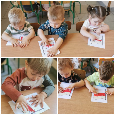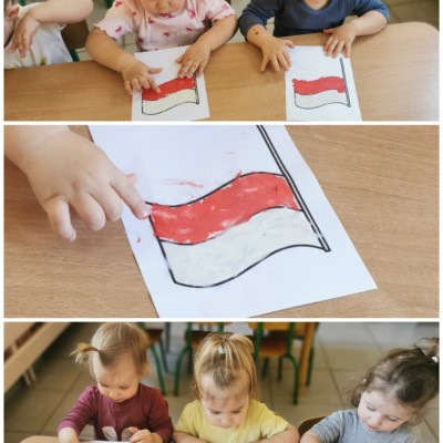 Zbliża się "majówka", a co się z tym wiąże obchody Świąt Narodowych - Święto Flagi oraz Konstytucji 3 maja. Budowanie świadomości narodowej oraz przywiązania do Ojczyzny jest ważne na każdym etapie życia, tak więc i nasze małe Biedroneczki postanowiły uczcić te ważne dla Polski dni. Z tej okazji wykonaliśmy prace plastyczne, przedstawiające symbol narodowy jakim jest Flaga Polski. W tym celu wykorzystalismy plastelinę, którą dzieci rozcierały paluszkami na kartce, tworząc flagę w biało - czerwonej barwie. Piękne prace zobaczyć można na naszej tablicy, jak również w galerii zdjęć.