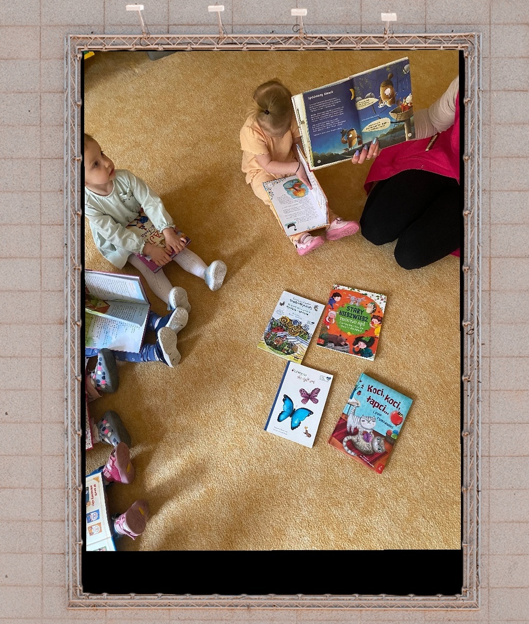 W tym tygodniu obchodziliśmy Międzynarodowy Dzień Książki. W tym dniu ciocie przeczytały Nam wiele ciekawych książek z morałem. My także uważnie słuchaliśmy i oglądaliśmy ilustracje z bajek. Czytanie książek to bardzo interesujące zajęć.