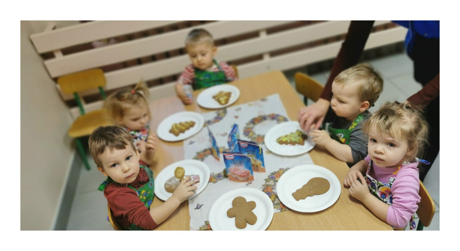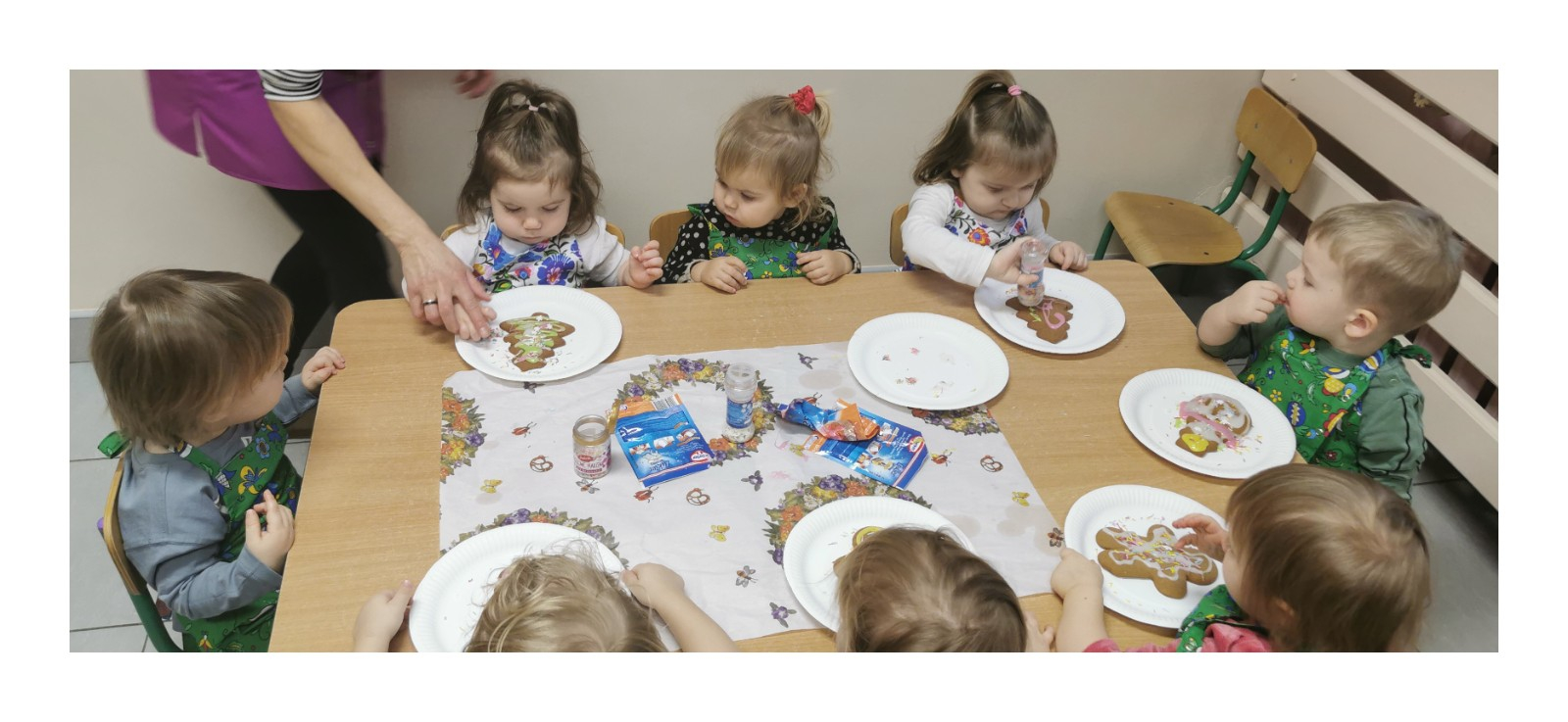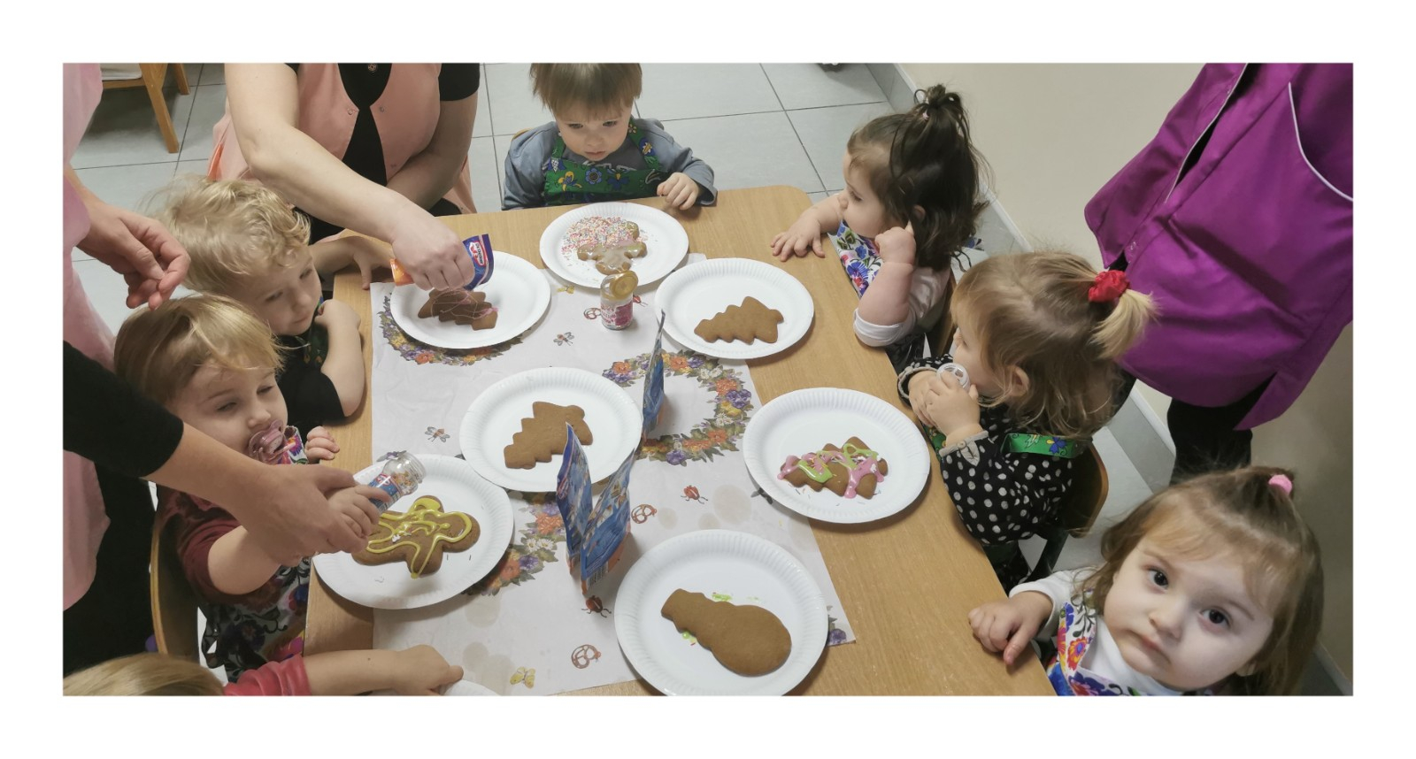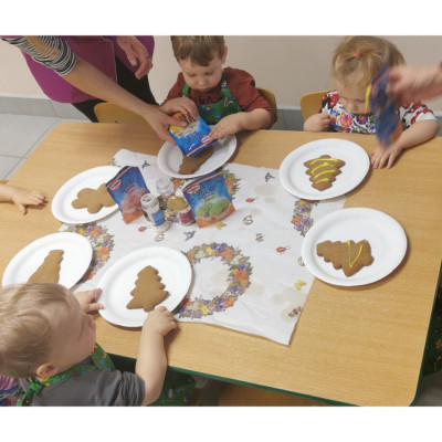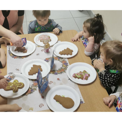 Zbliżają się najpiękniejsze święta w roku - święta pełne radości, miłości i rodzinnego ciepła - Boże Narodzenie. W każdym domu trwają przygotowania do tych wyjątkowych dni. W naszym żłobku również trwają takie przygotowania, mianowicie dzisiaj w grupie Biedronek dzieci udekorowały przepięknie pachnące pierniki. Wykorzystaliśmy w tym celu kolorowy lukier oraz kolorową posypkę. Atmosferę Świąt czuć już na całego a my korzystając z okazji życzymy naszym podopiecznym i ich rodzinie spokojnych Świąt pełnych radości i ciepła, a w Nowym Roku dużo szczęścia i pogody ducha.