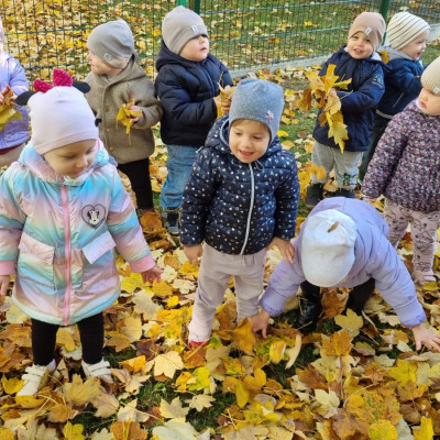 Zdjecia przedstawiają dzieci bawiące się na ogrodzie żłobkowym.