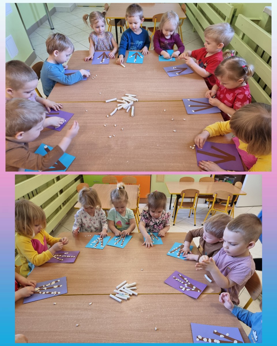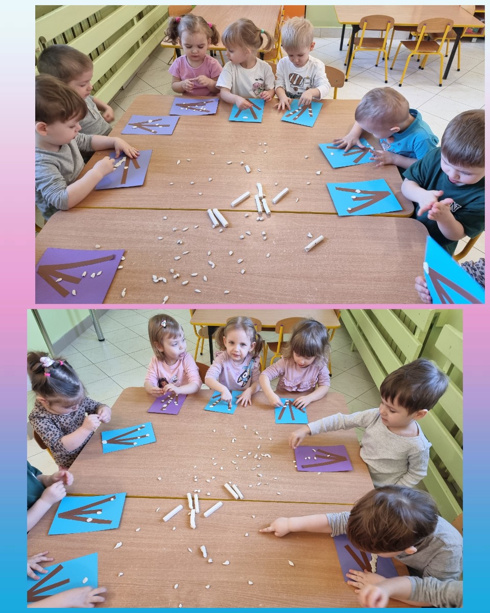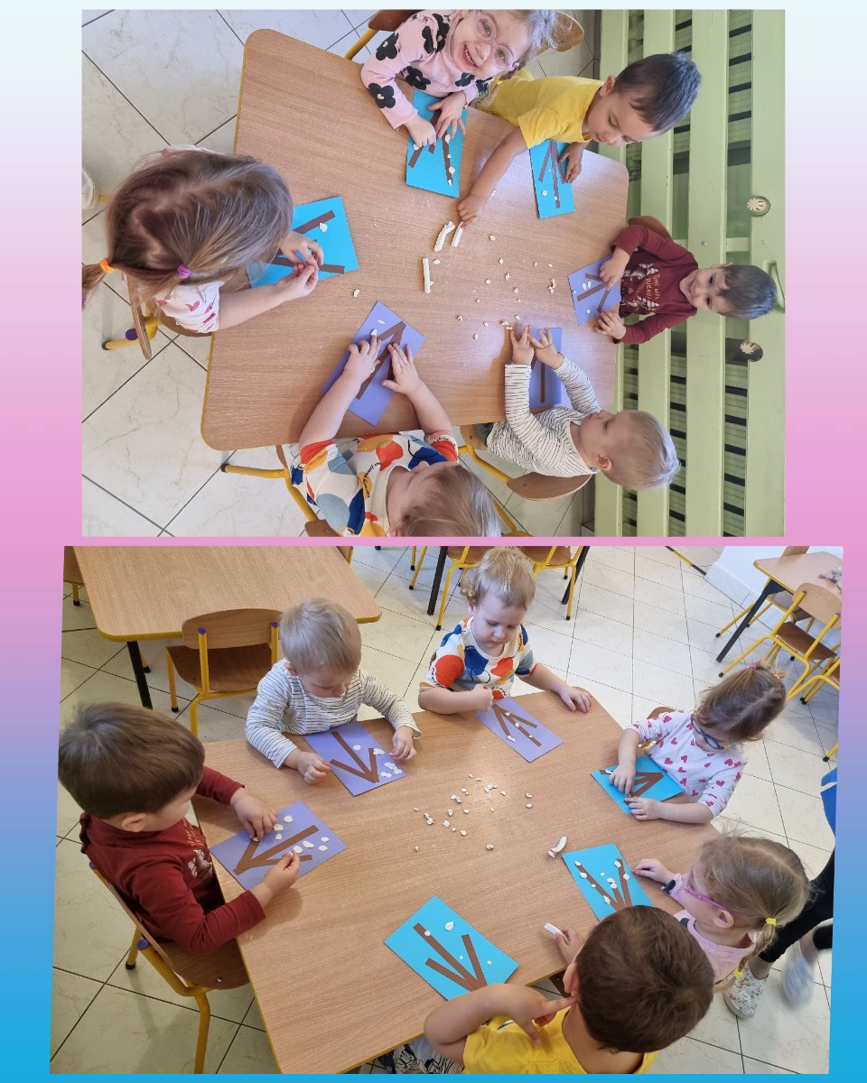 Zdjęcia przedstawiają dzieci wykonujące prace plastyczną.