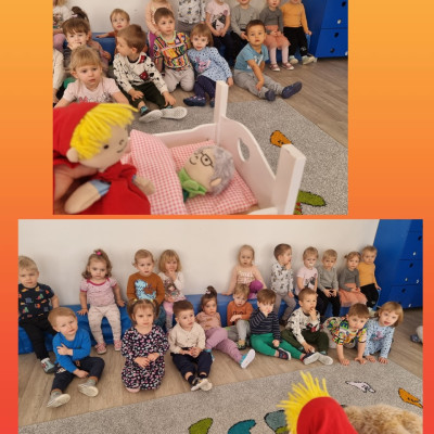 Żabki z ogromnym zainteresowaniem śledziły losy Czerwonego Kapturka.