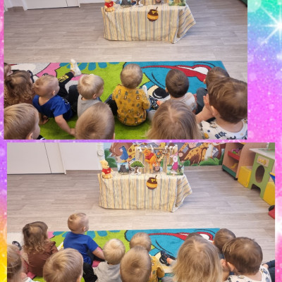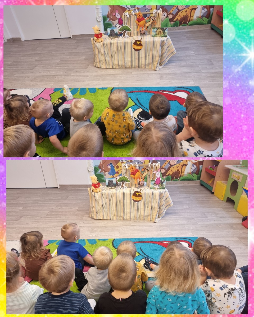 Opiekunki przygotowały teatrzyk pt. „Kubuś Puchatek i przyjaciele”, wcielając się w role Kubusia Puchatka, Tygryska,Prosiaczka, Kłapouchego.