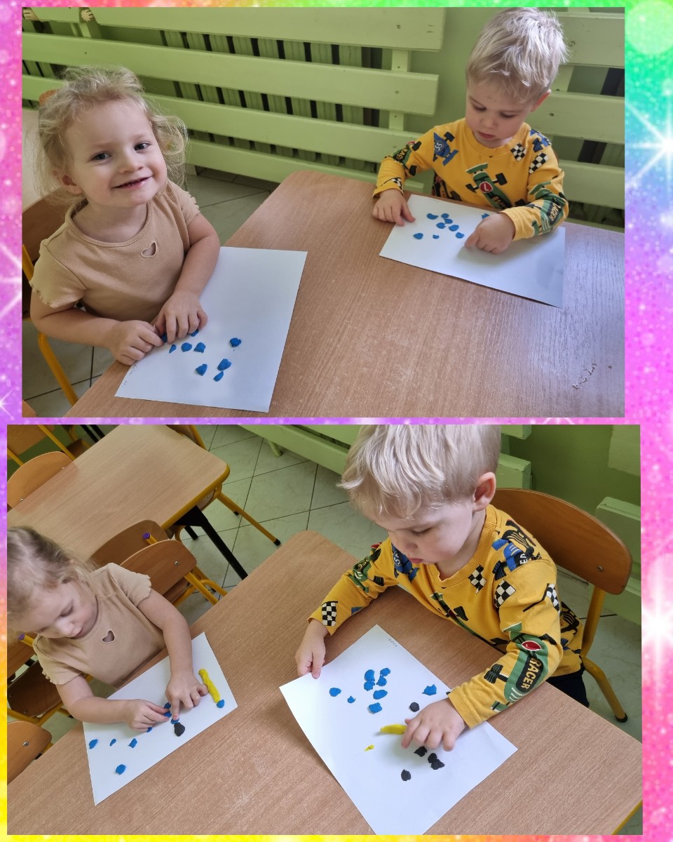 Tym razem do nauki kolorów wykorzystaliśmy kredki, plastelinę i kulki z kolorowych kartek.