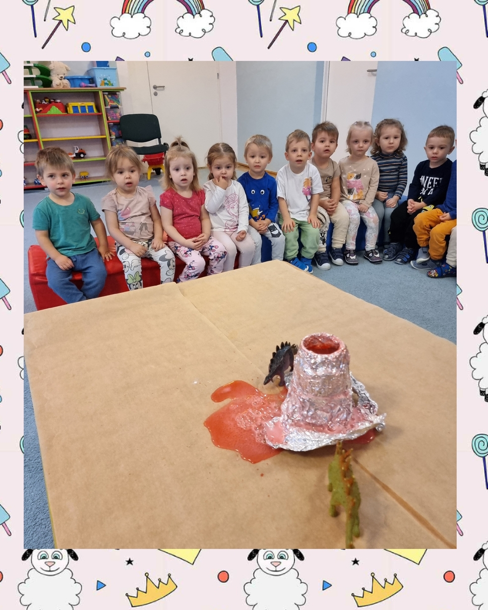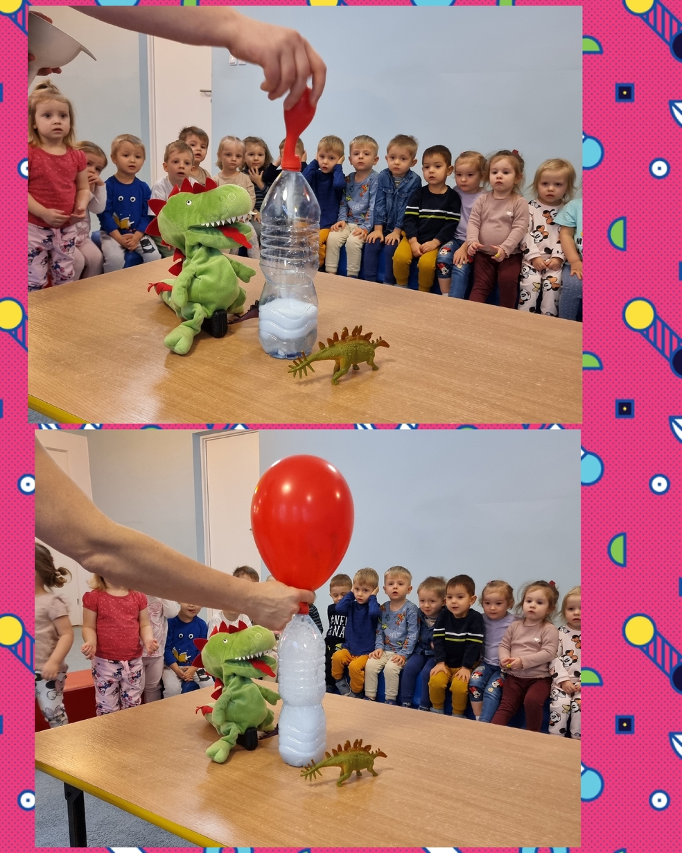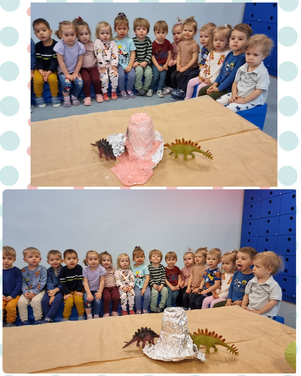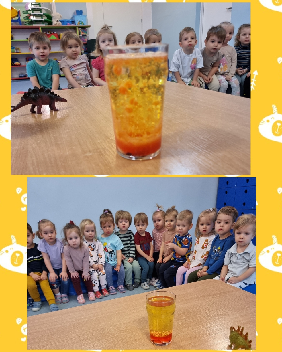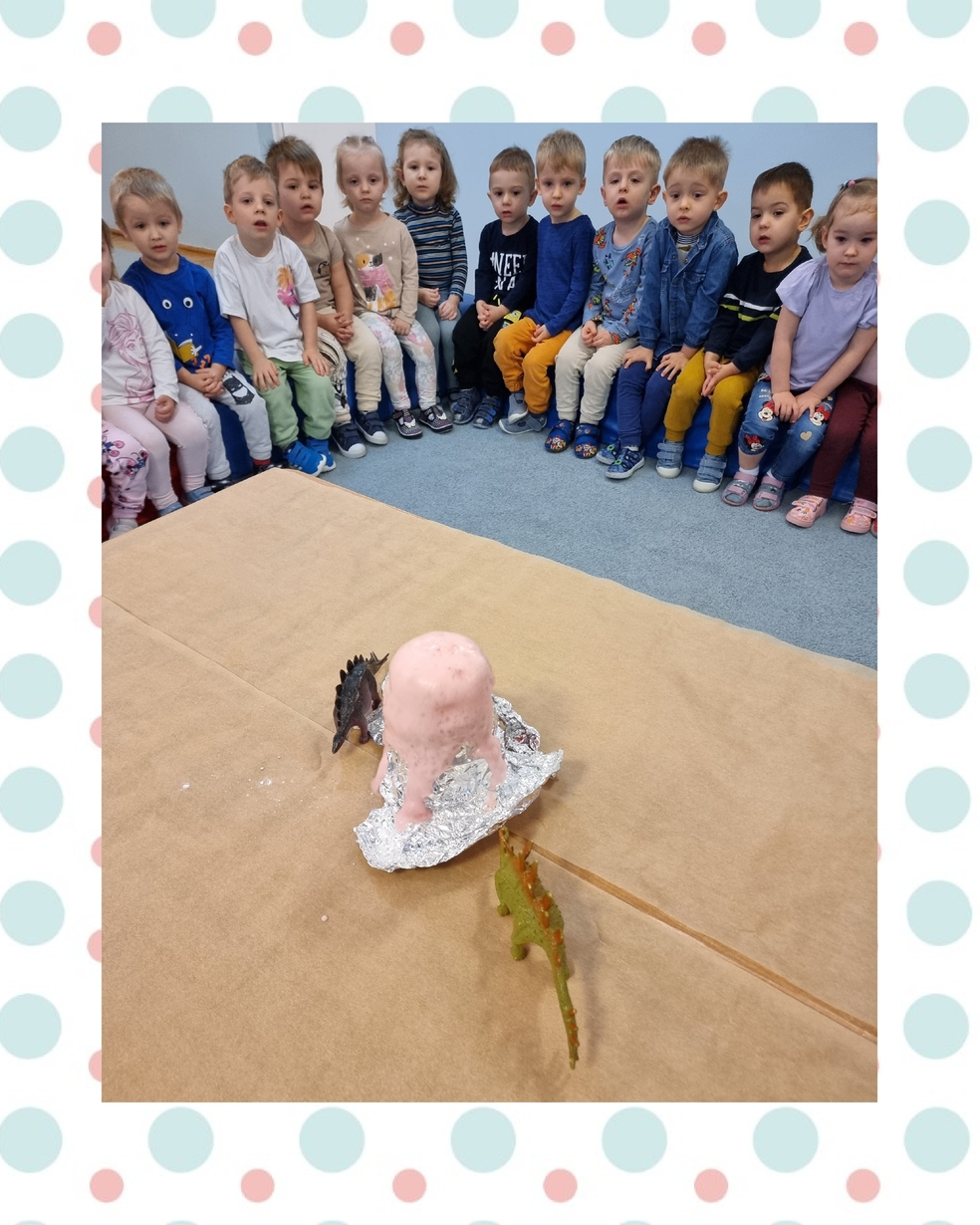 Dzieci z zainteresowaniem oglądały doświadczenia chemiczne które przygotowały ciocię : wulkan, lampa lawa, nadmuchanie balona.
