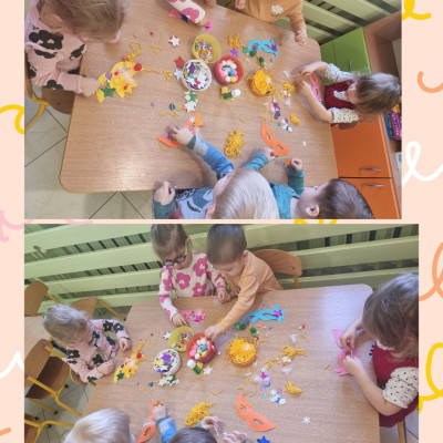 Okres karnawału trwa więc nasze kochane żabki postanowiły wykonać pracę plastyczną "kolorowe maski"