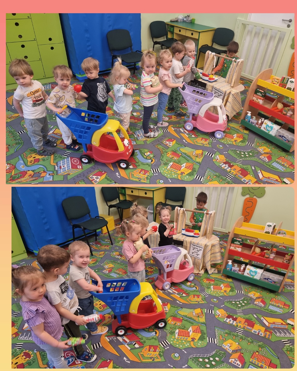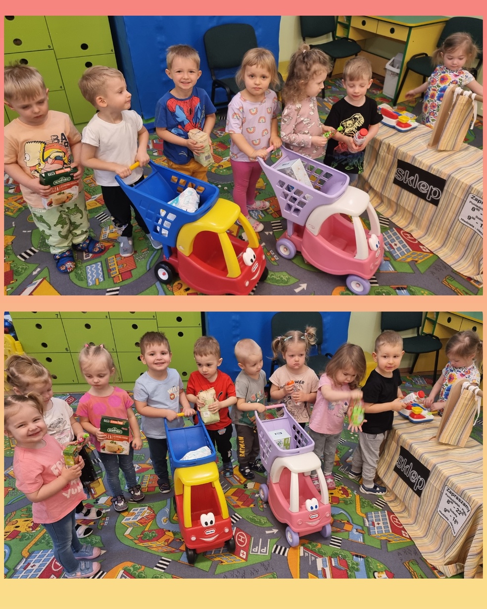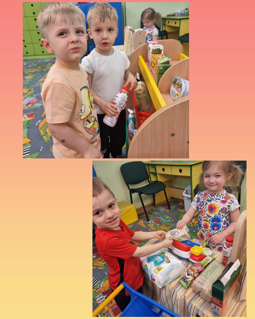 Dzieci były bardzo zaangażowane podczas dzisiejszej zabawy w " sklep ".