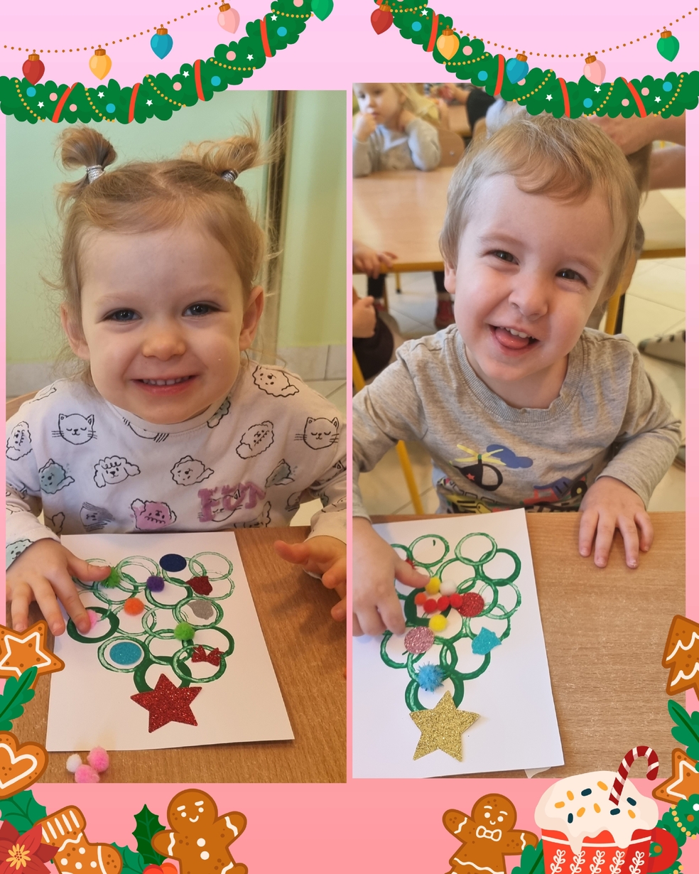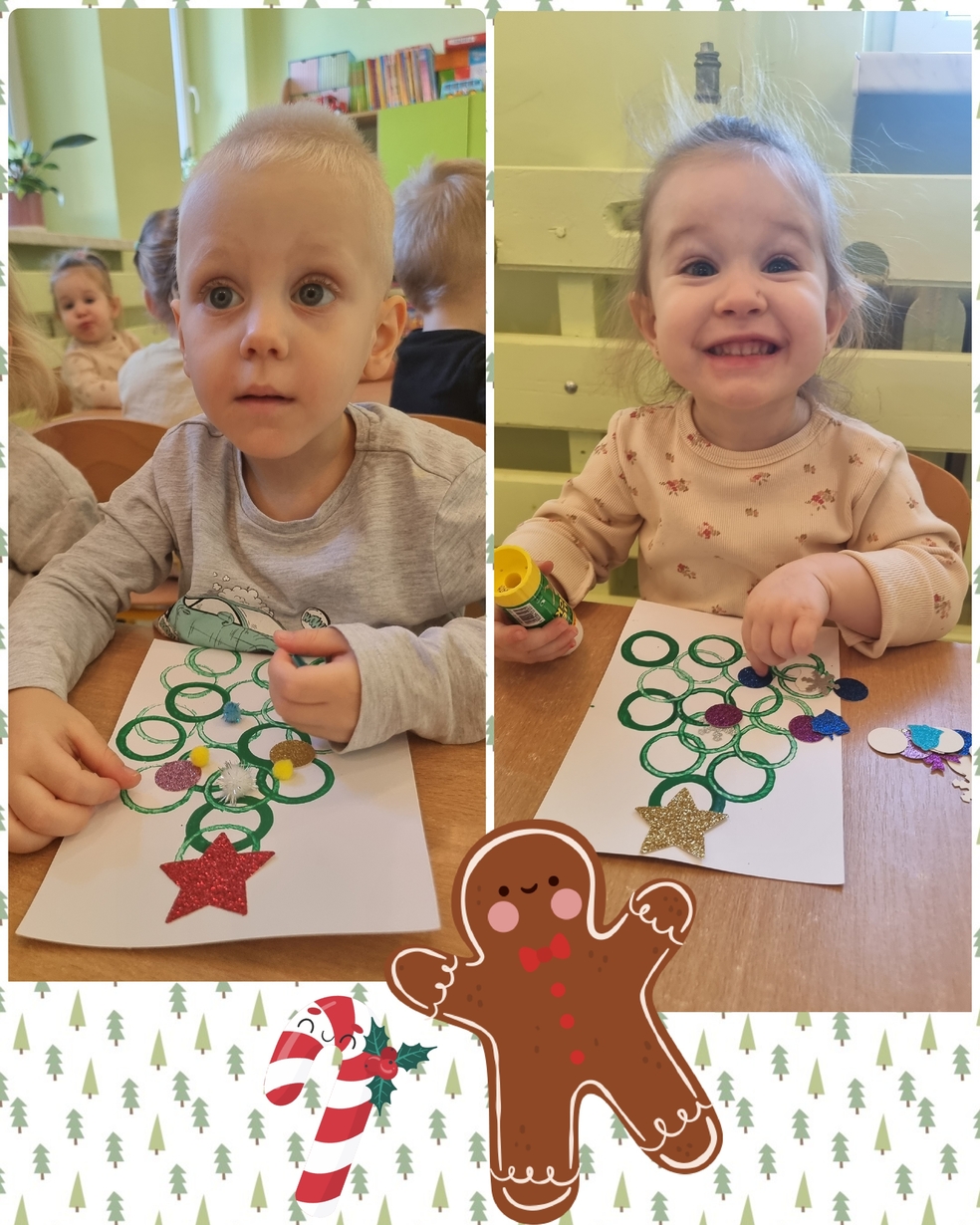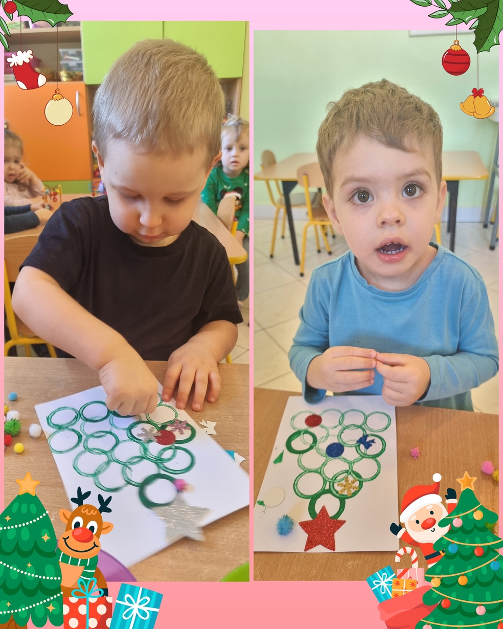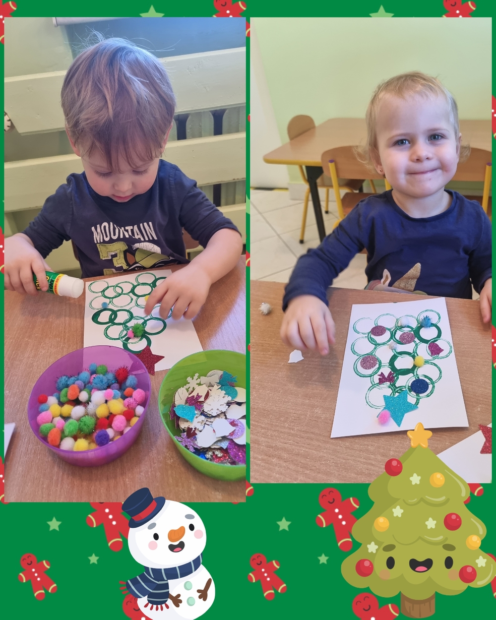 Panie opiekujace się małymi artystami przygotowały zielone choineczki, które dzieci ozdobiły w swoim własnym, niepowtarzalnym stylu.