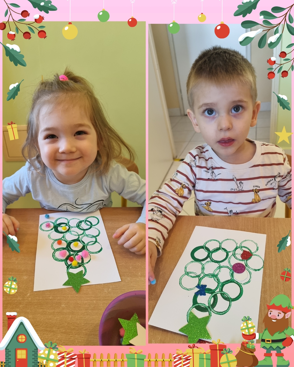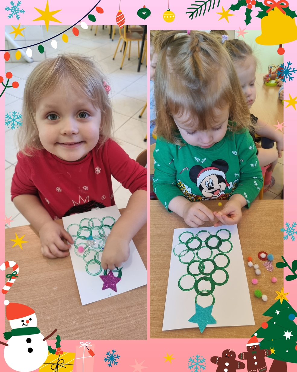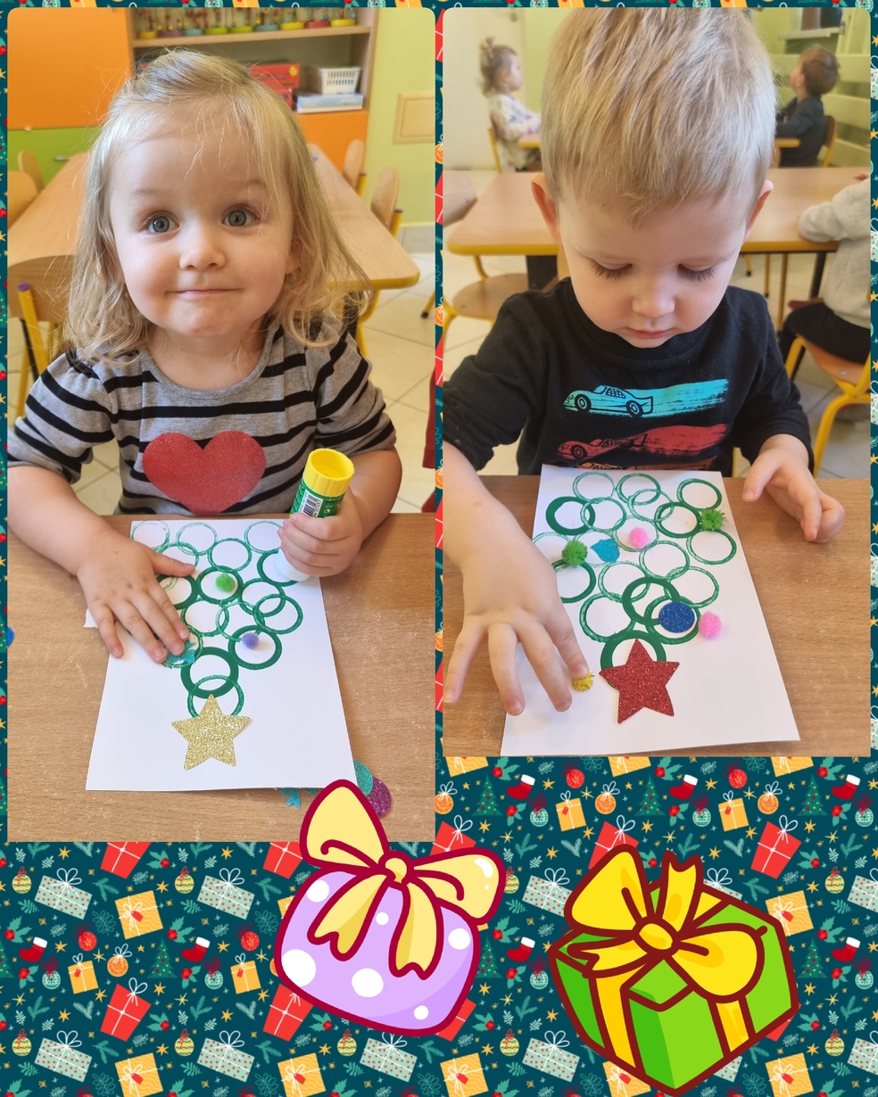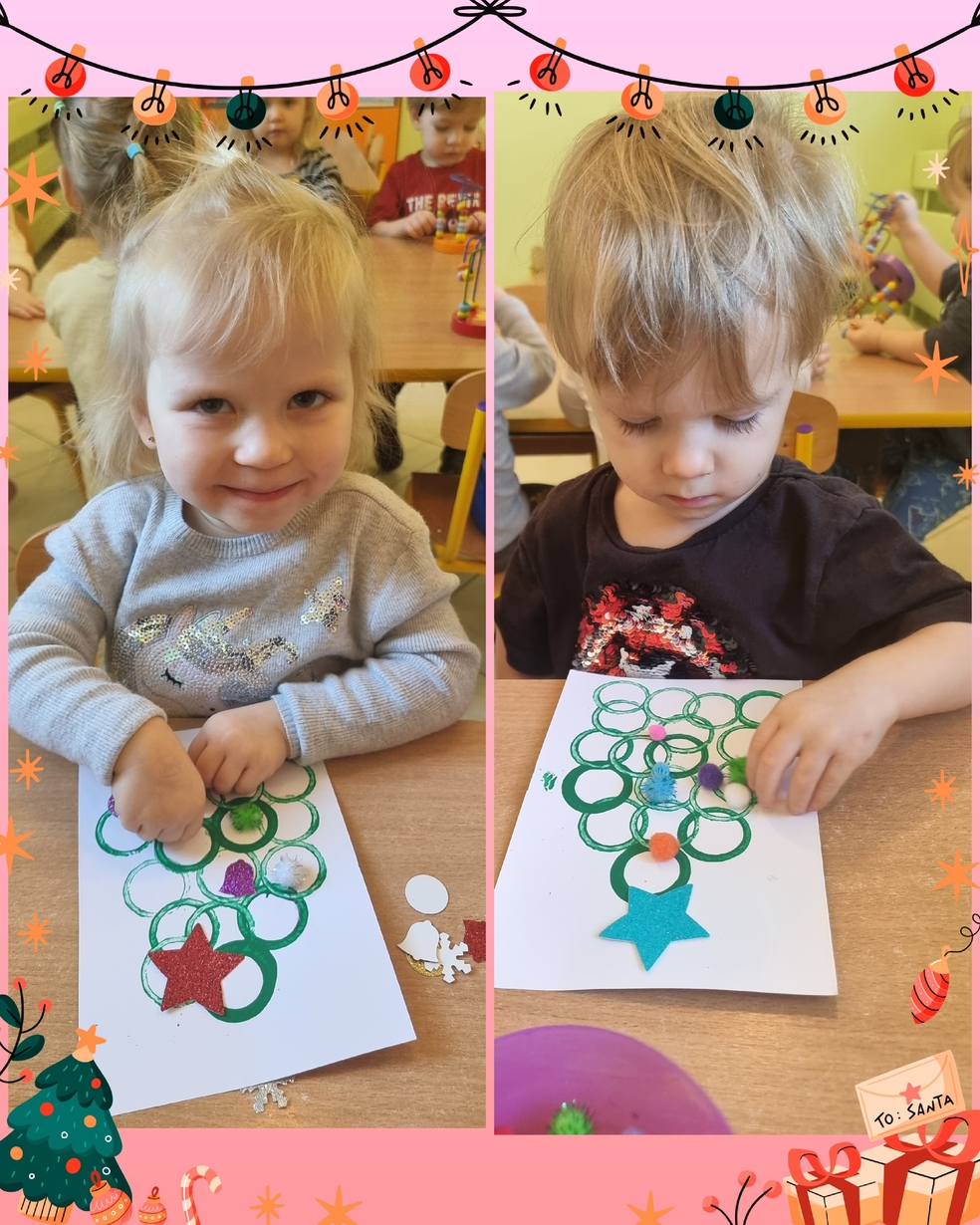 Panie opiekujace się małymi artystami przygotowały zielone choineczki, które dzieci ozdobiły w swoim własnym, niepowtarzalnym stylu.