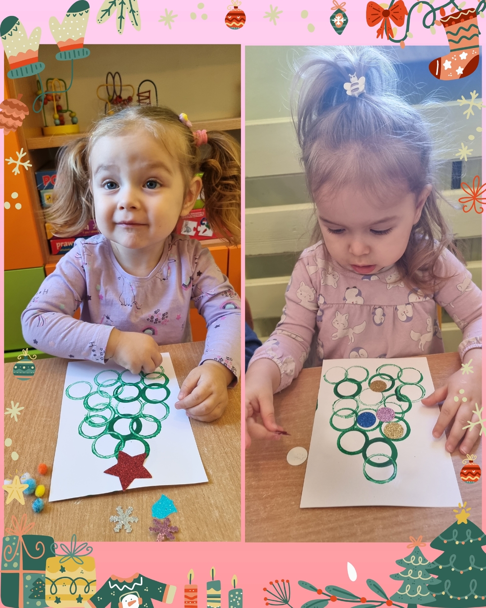 Nasze kochane Żabki Postanowiły wykazać się talentem artystycznym i stworzyć pracę plastyczą pt. "Moja choineczka".