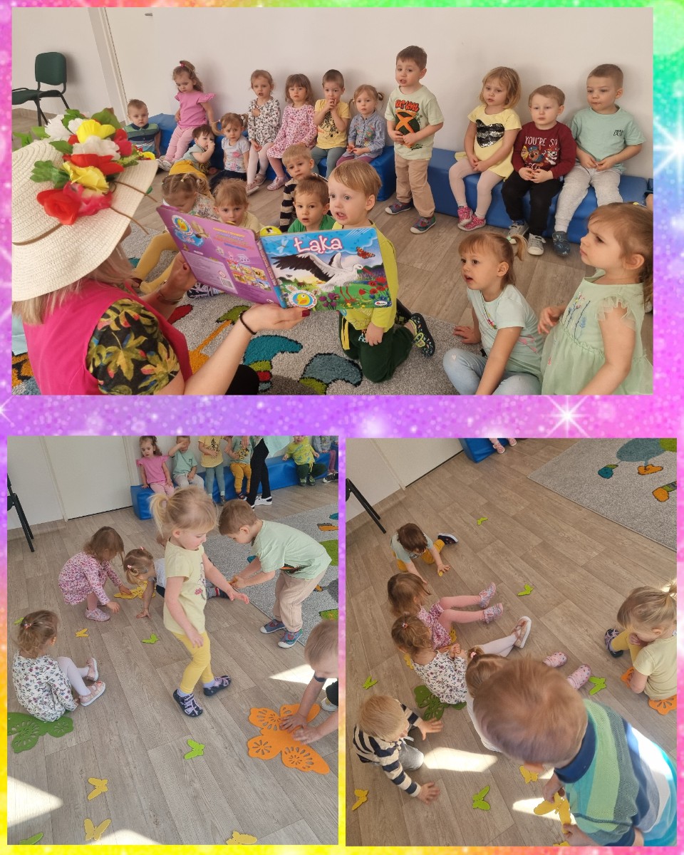 Żłobkowe pociechy odśpiewały wiosenne piosenki m.in.: "Wiosna wiosenka", "Pobudka z ogródka", "Maszeruje wiosna" oraz wyrecytowały wierszyk "Co robisz szpaczku - pyta wiewiórka?".