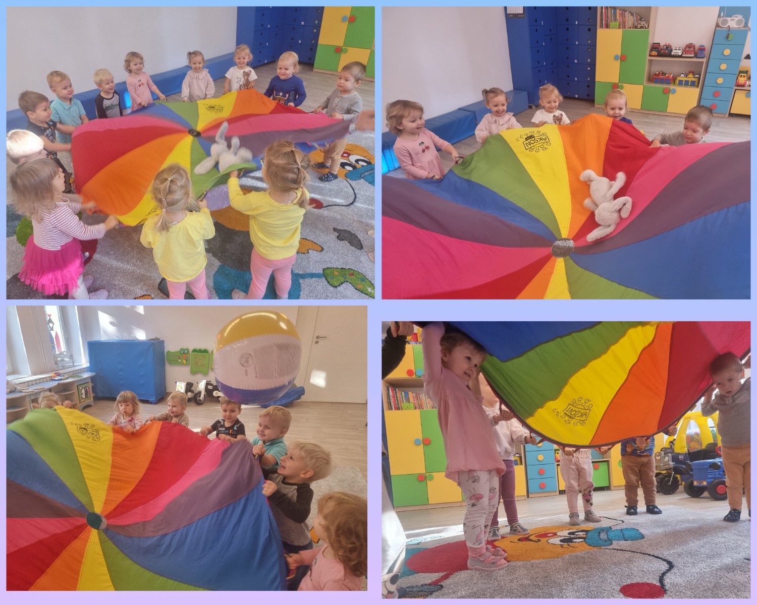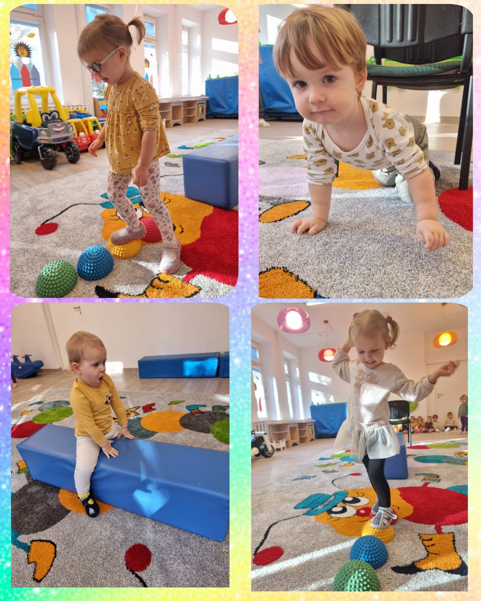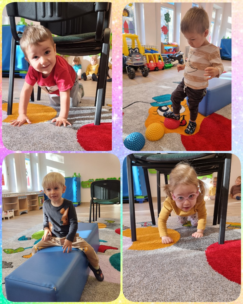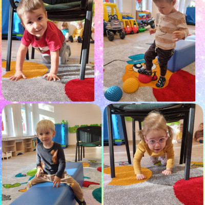 Nasi podopieczni bawią się w pięknie przygotowanych salach. poznali pierwsze zabawy w kółeczku, tor przeszkód usłyszeli pierwsze piosenki oraz wierszyki, by te początki były dla nich jak najprzyjemniejsze i najbardziej ciekawe.