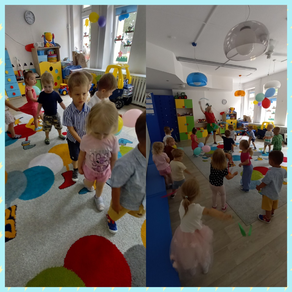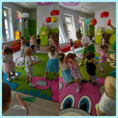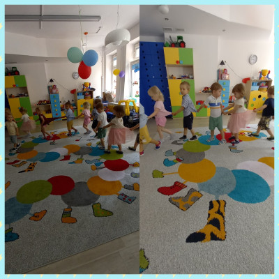Zdjęcia przedstawiają dzieci świętujące zakończenie roku żłobkowego