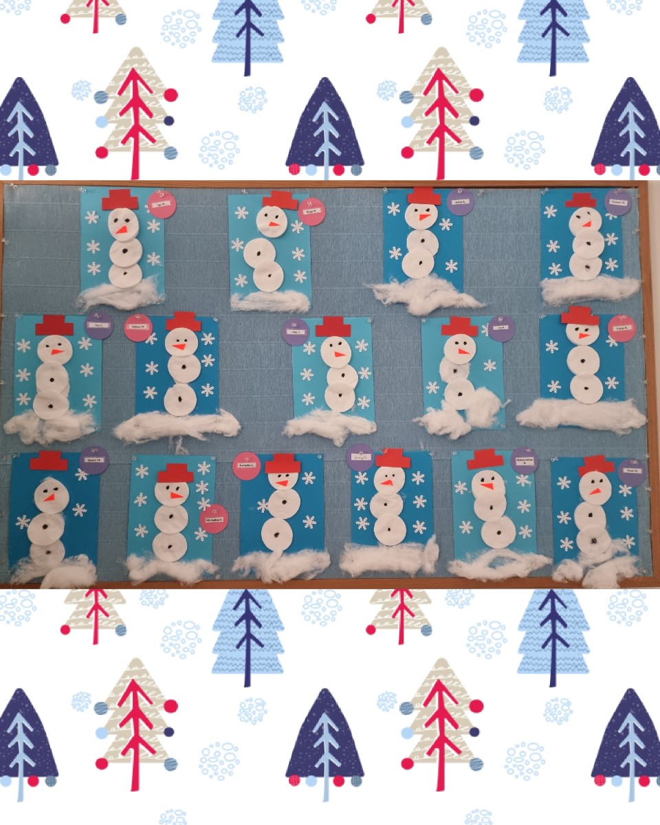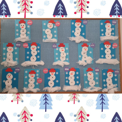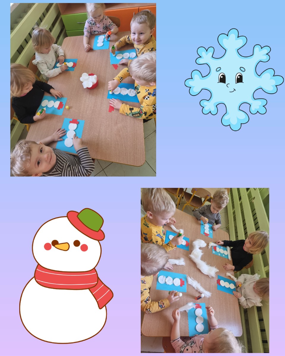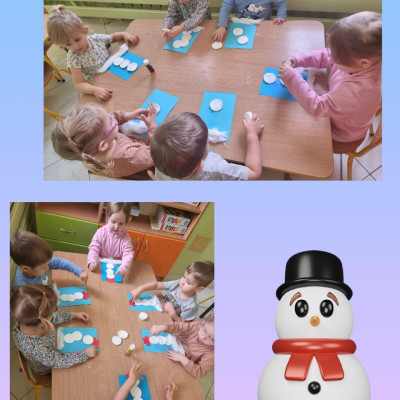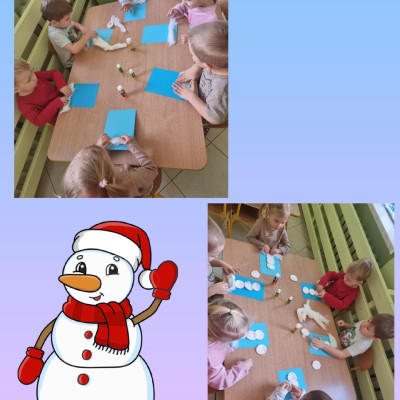 Ze względu na bardzo mroźną pogodę nasze kochane żabki postanowiły wykonać pracę plastyczną "Zimowe
