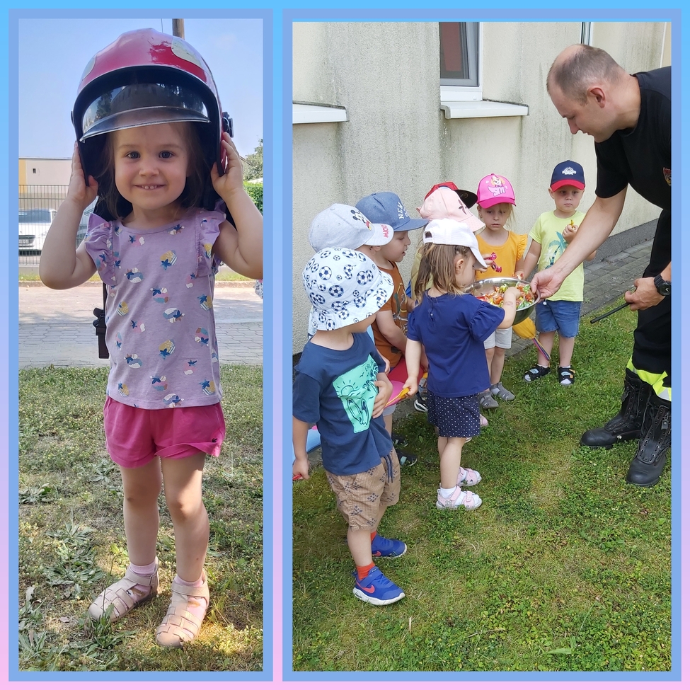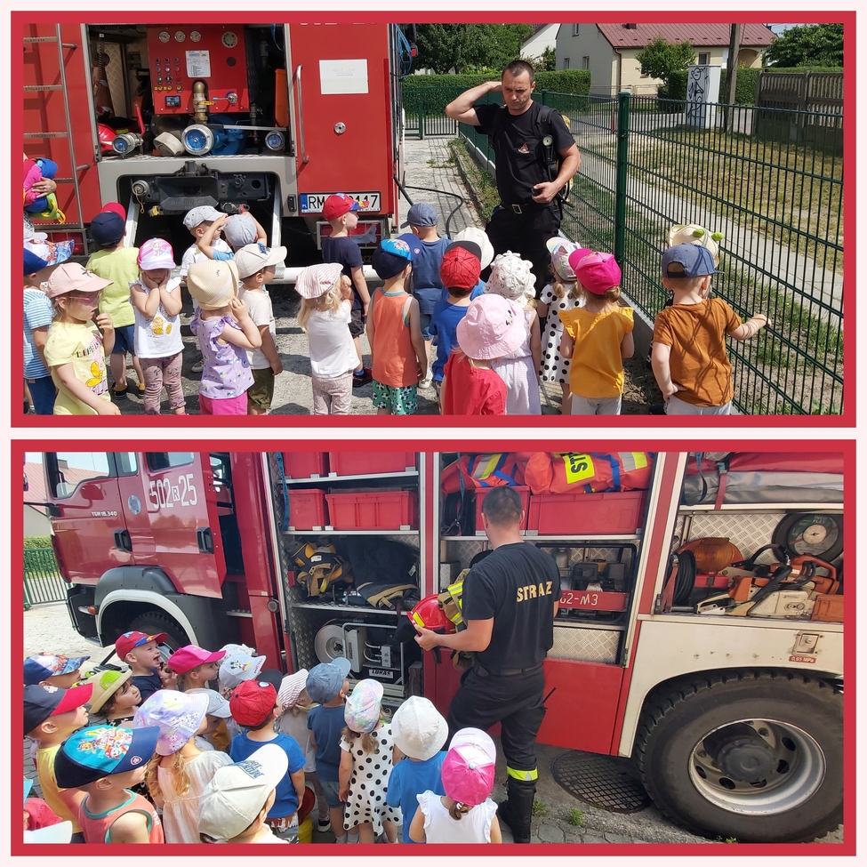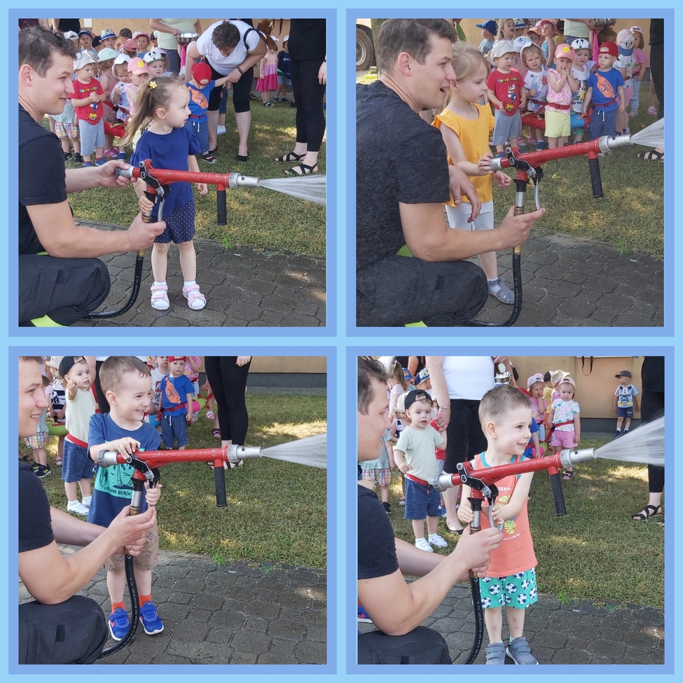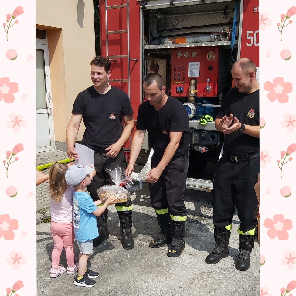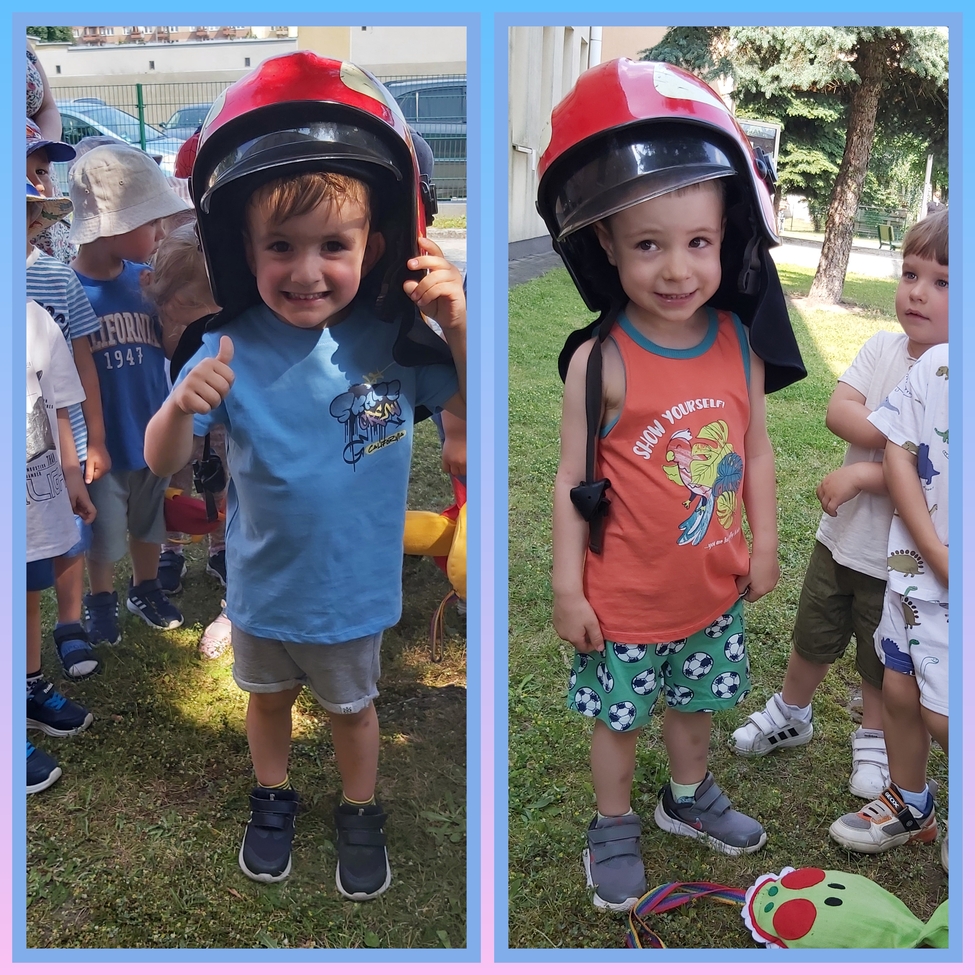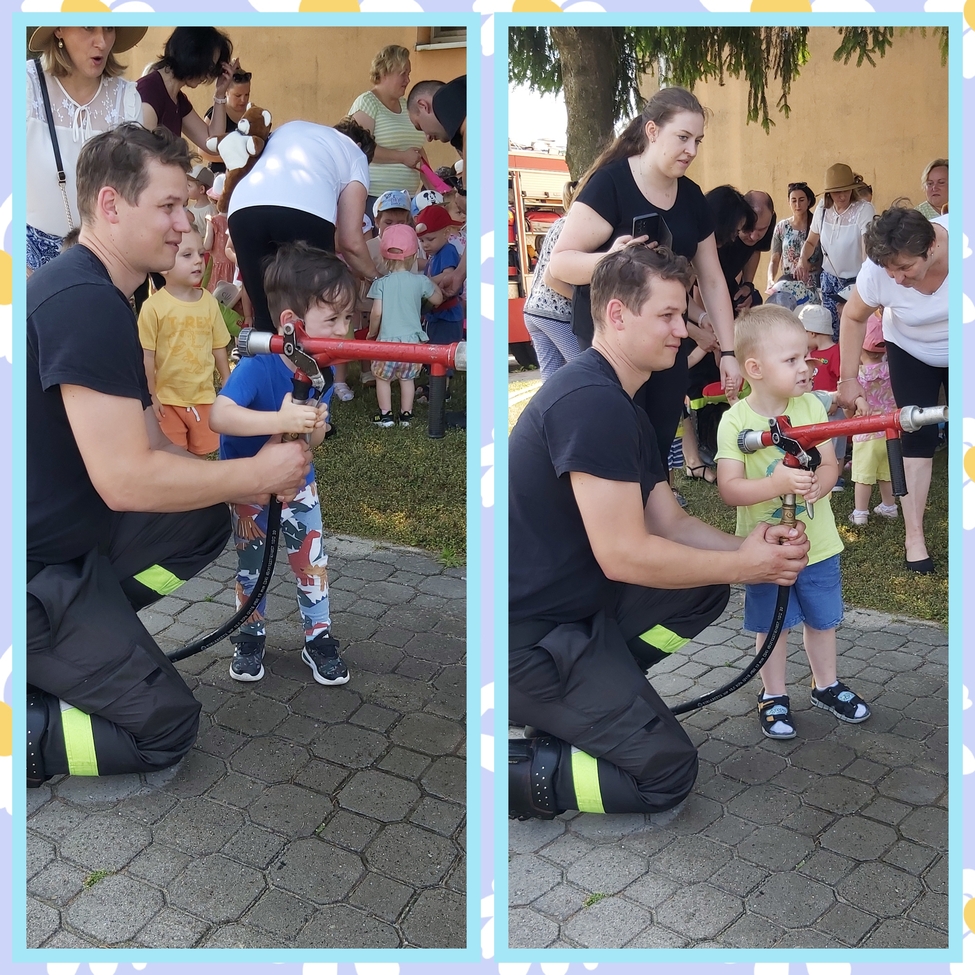 Dzis w naszym zlobku odwiedzili nas strażacy, najodważniejsze dzieci mogły założyć hełm strażacki, przymierzyć rękawice, wezwać pomoc przez krótkofalówkę a nawet potrzymać strażackiego węża. Strażacy zaprezentowali dzieciom wyposażenie wozu oraz sygnał dźwiękowy i świetlny.