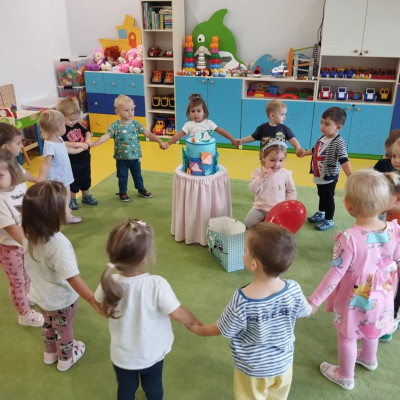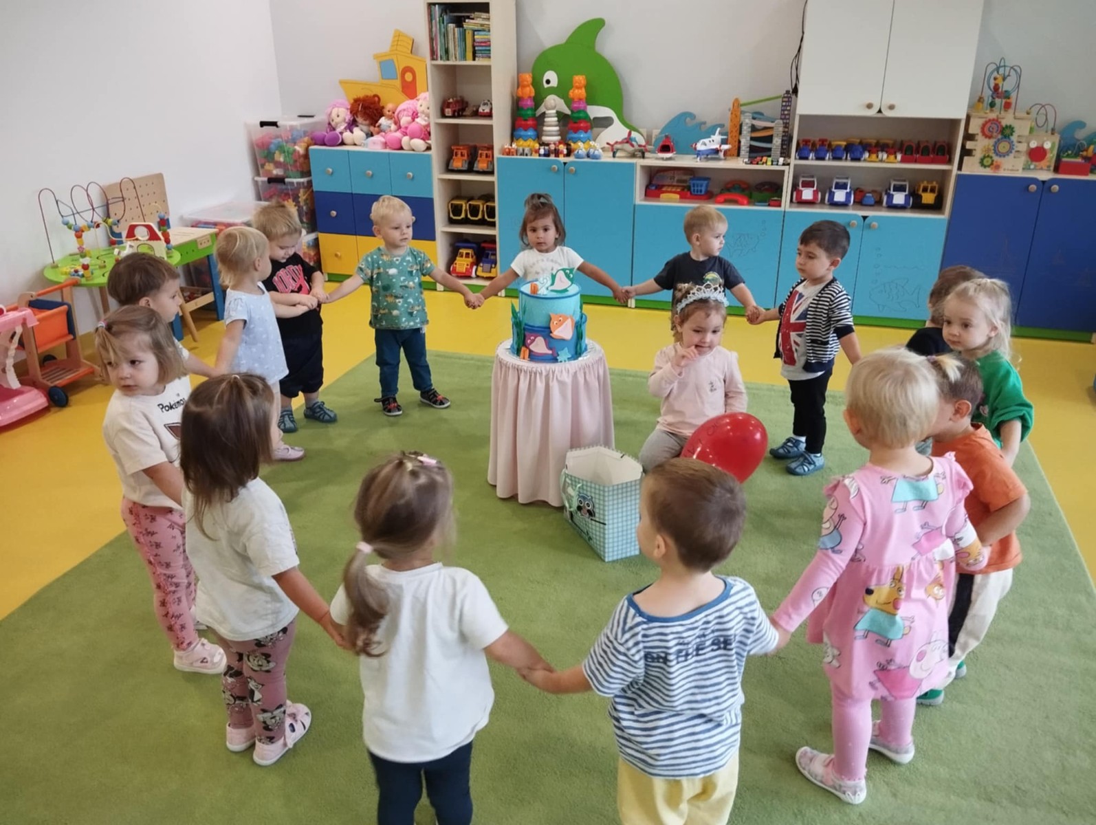 Zdjęcie przedstawia dzieci świętujące urodziny