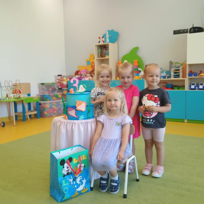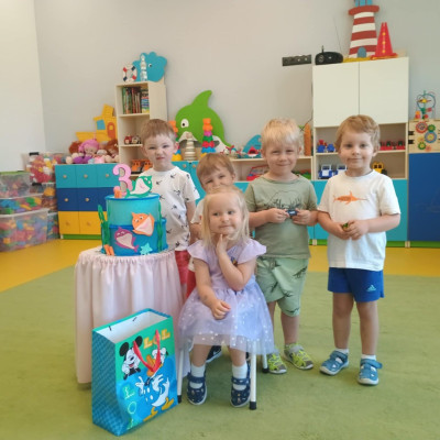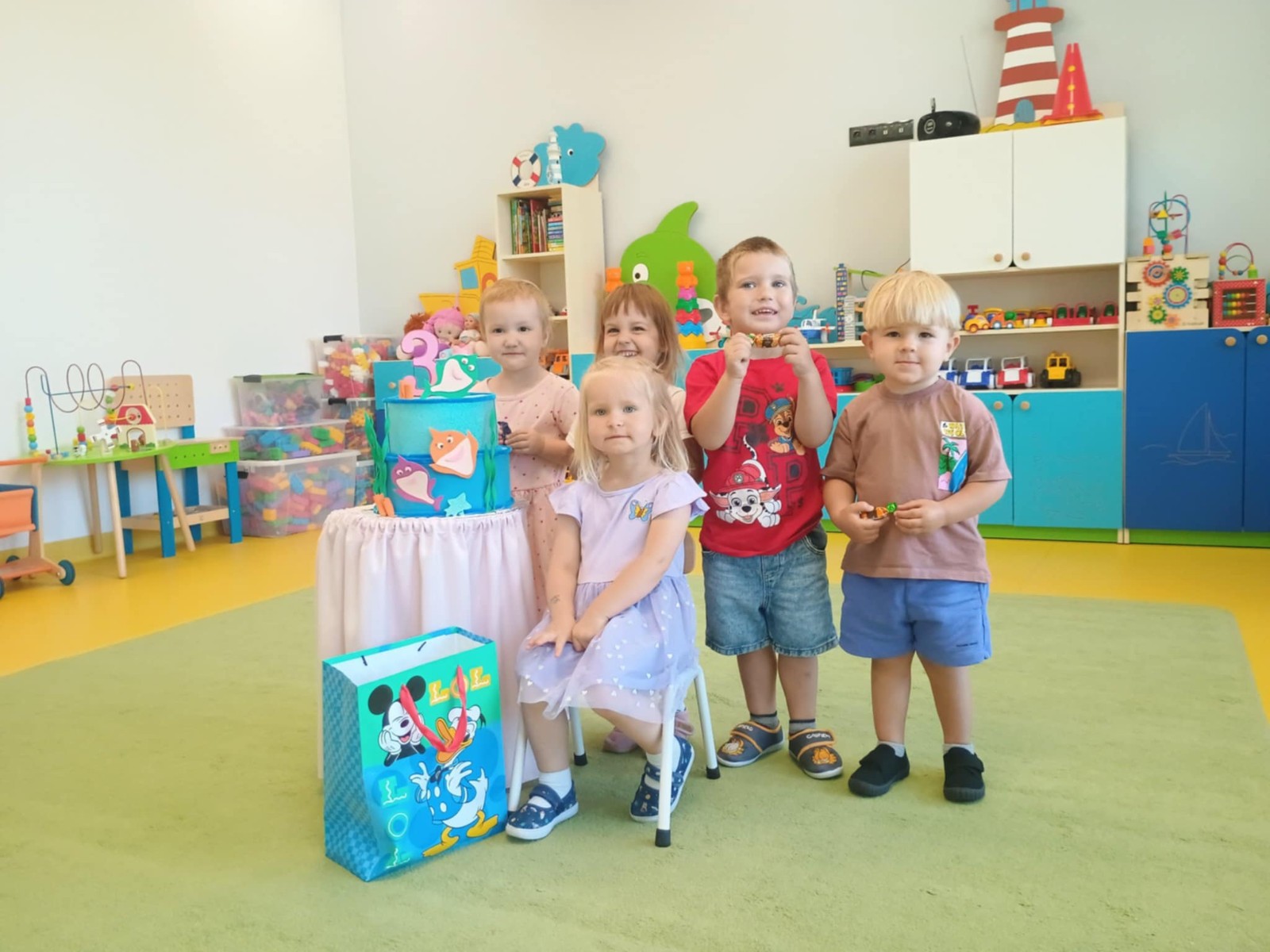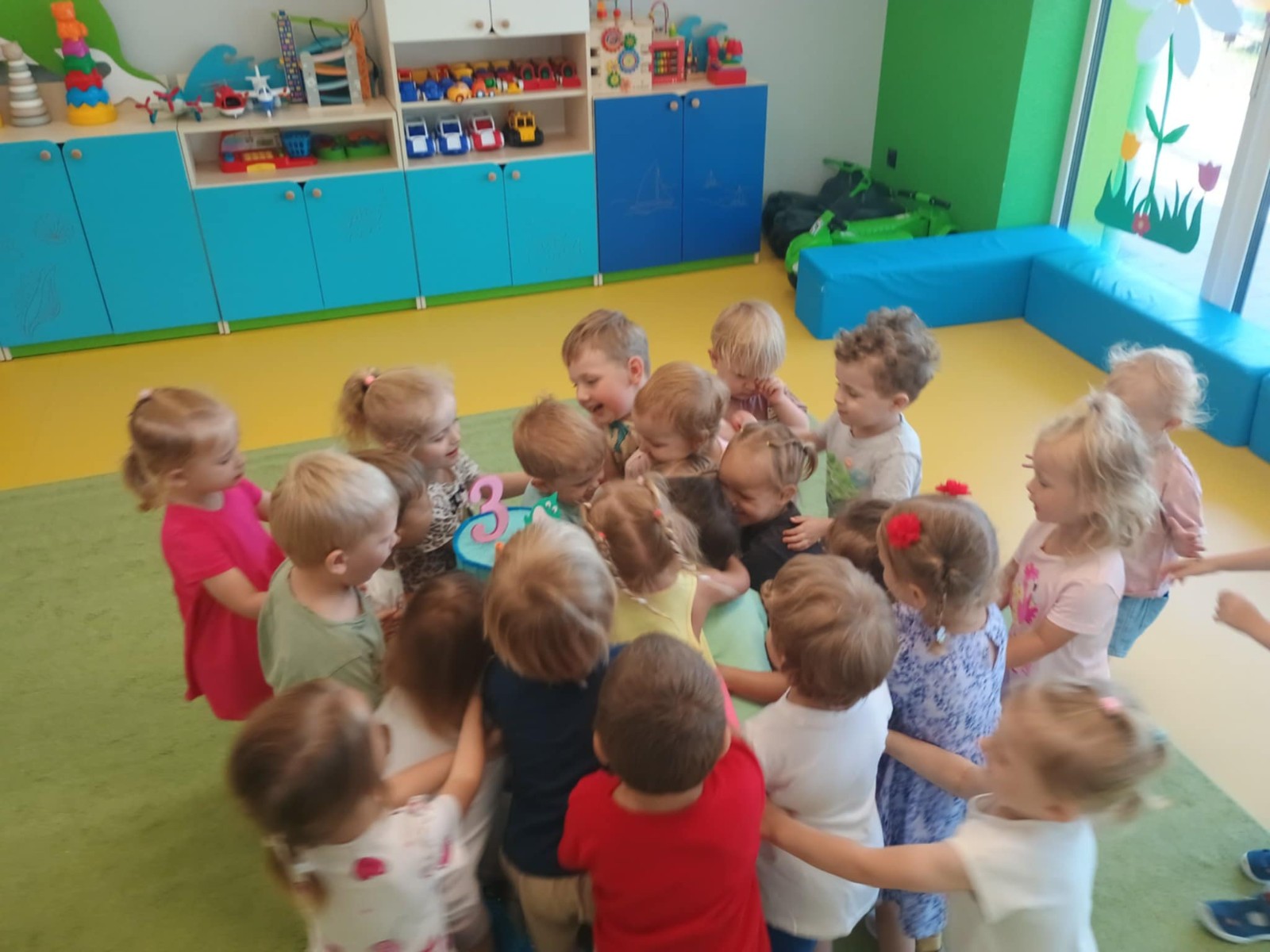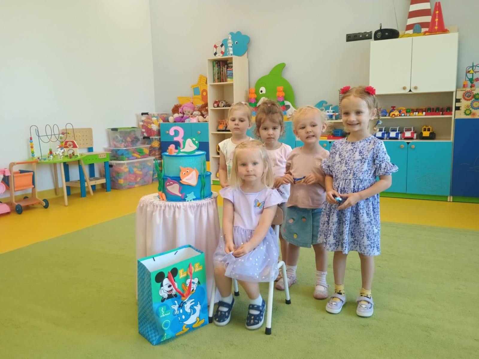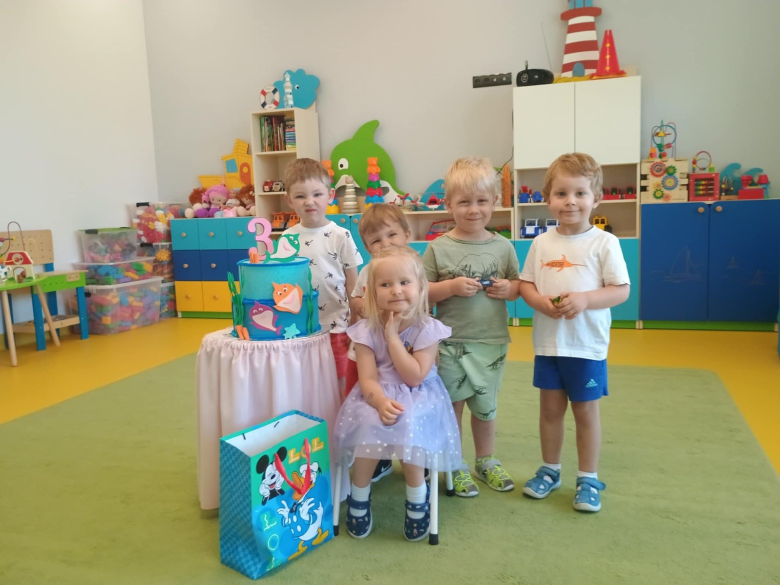 fZdjęcie przedstawia dzieci podczas zabawy urodzinowej