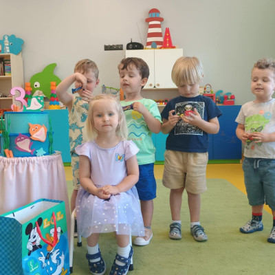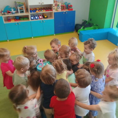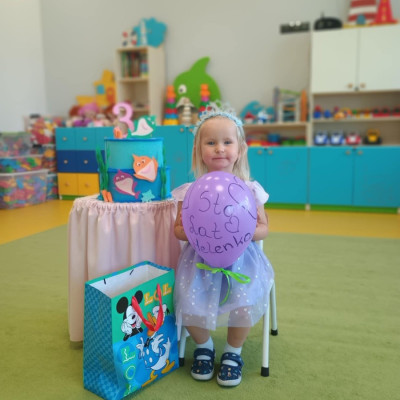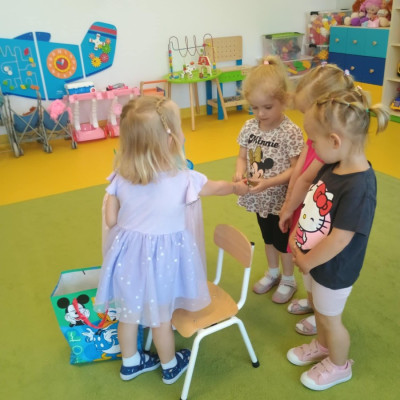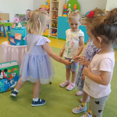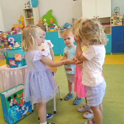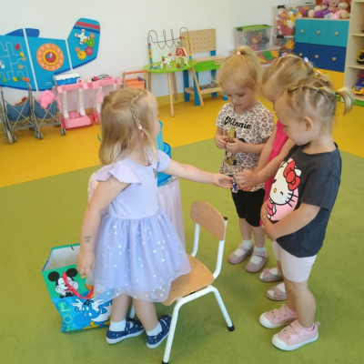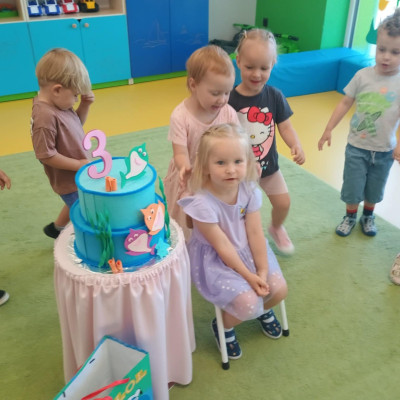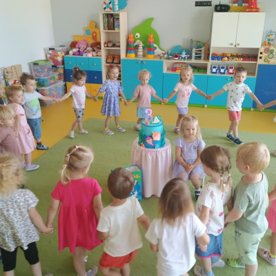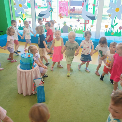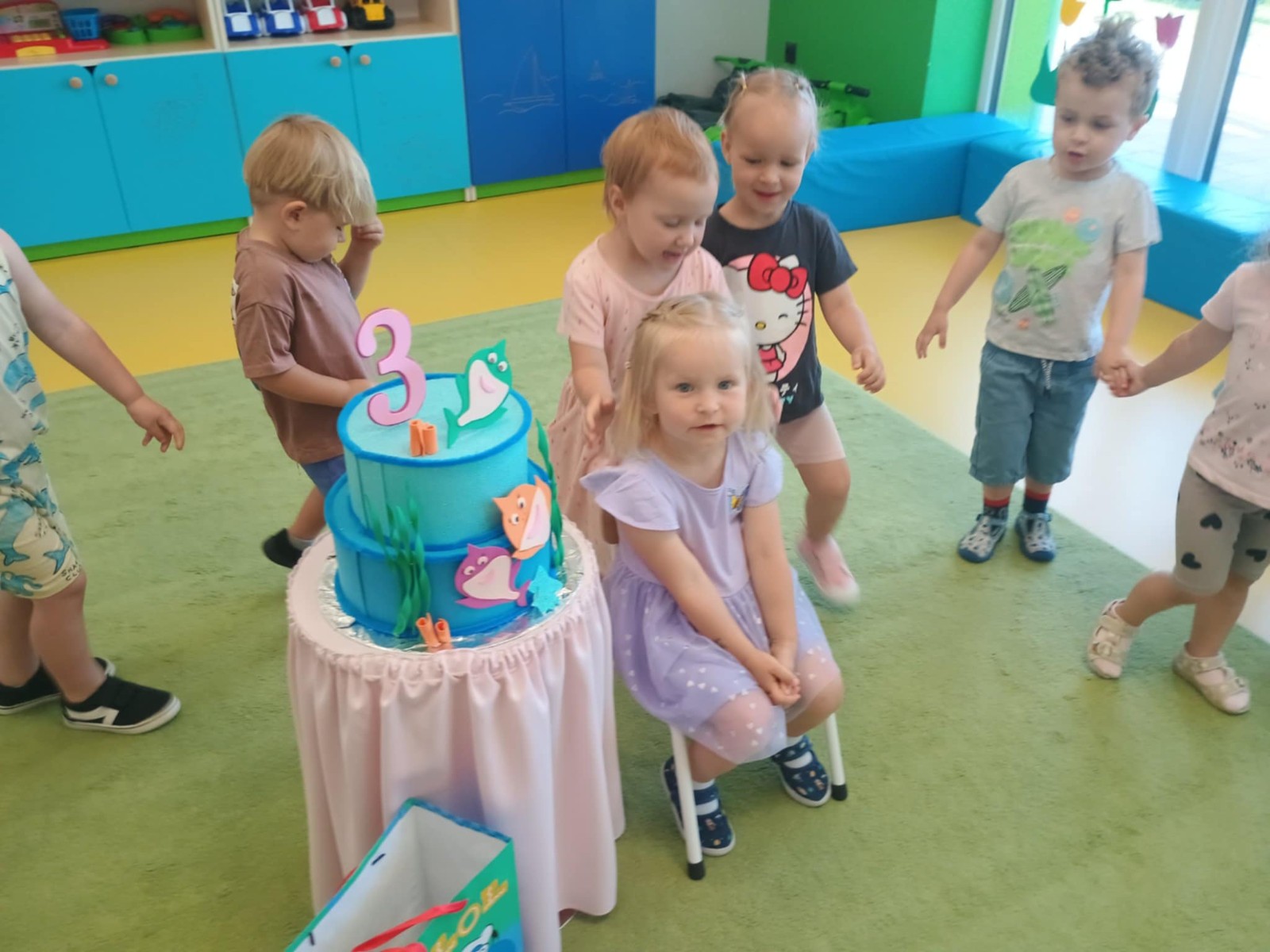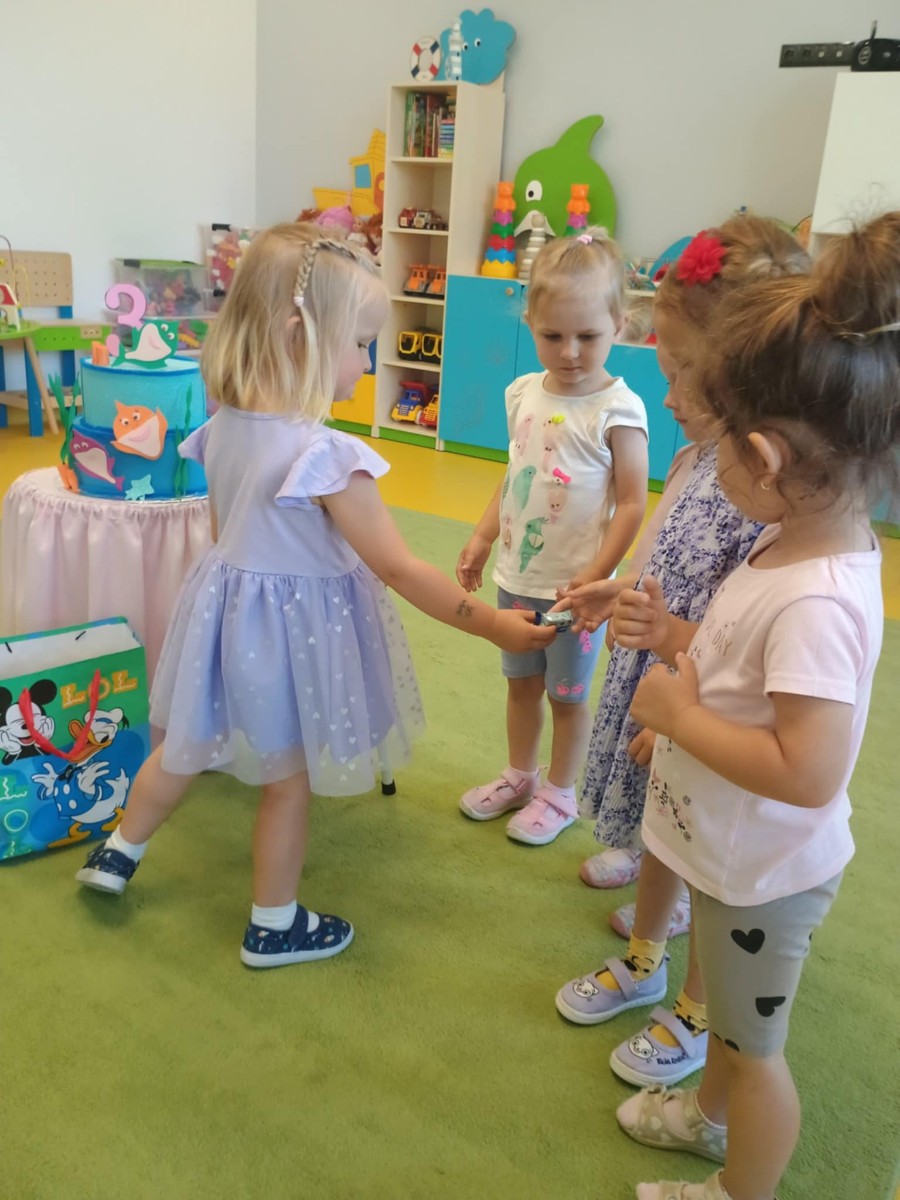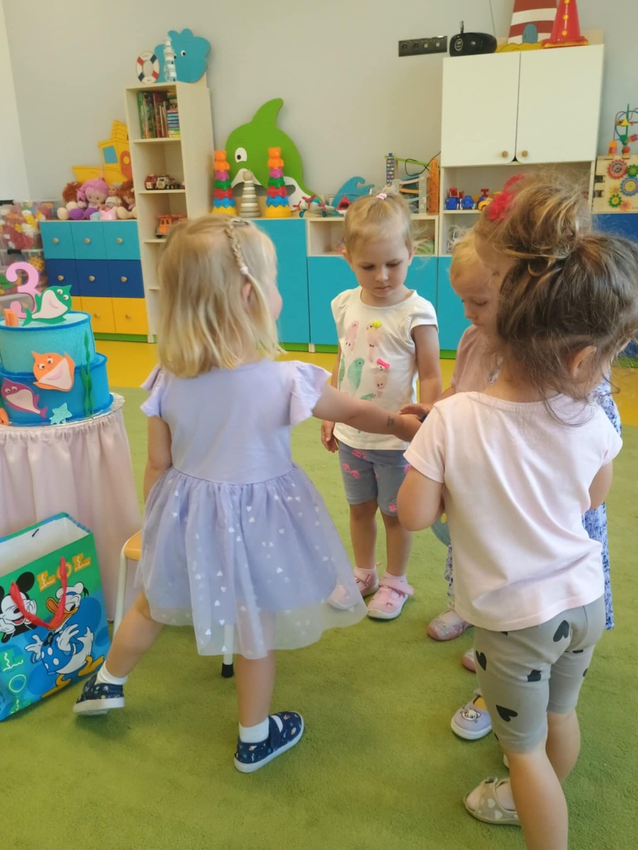 Zdjęcie przedstawia dzieci podczas zabawy urodzinowej