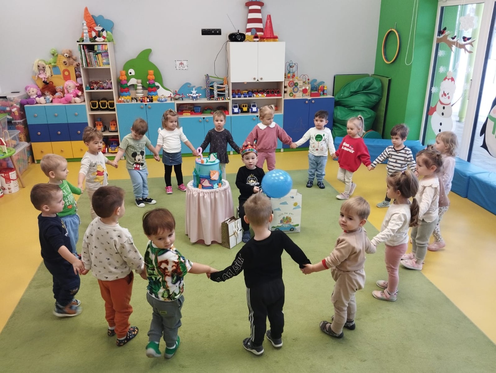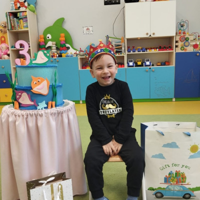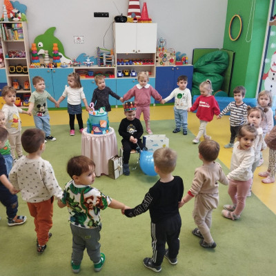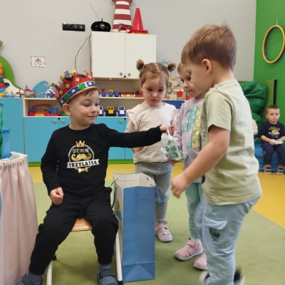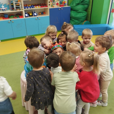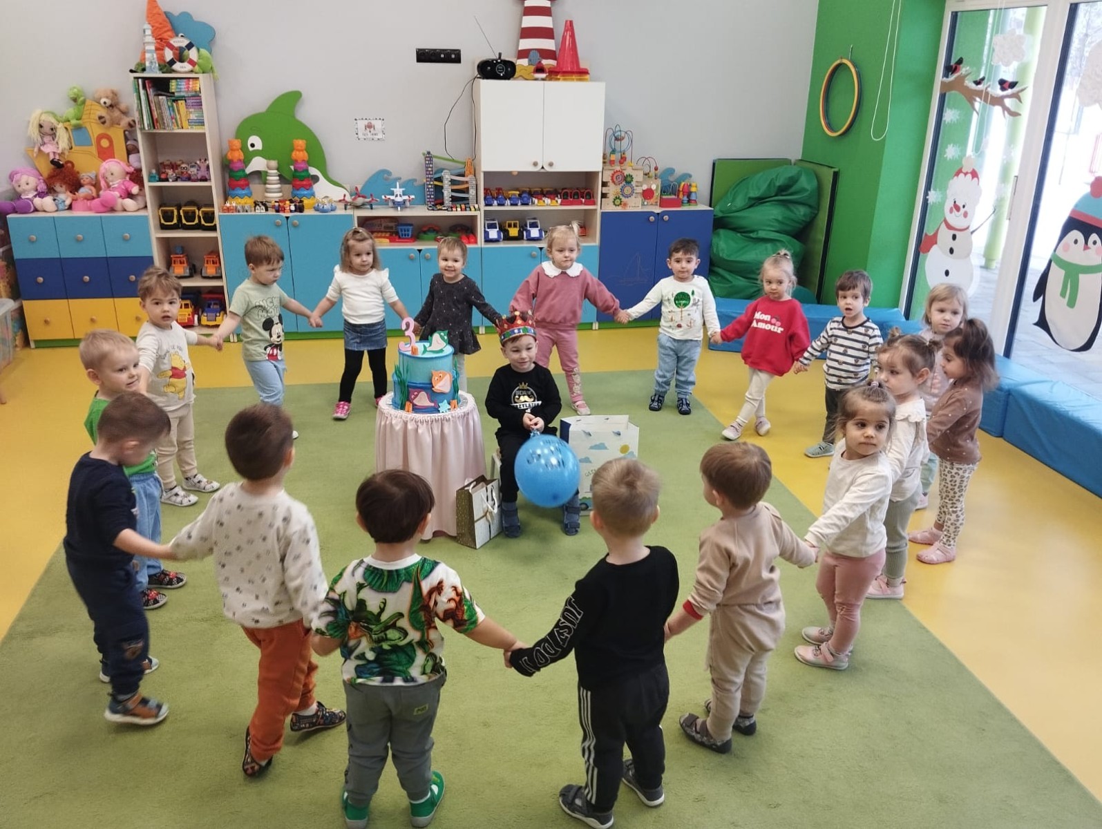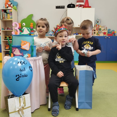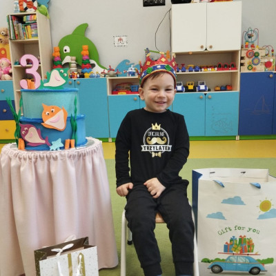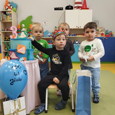 Zdjęcie przedstawia dzieci podczas urodzin kolegi