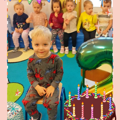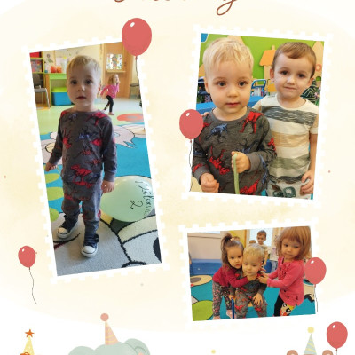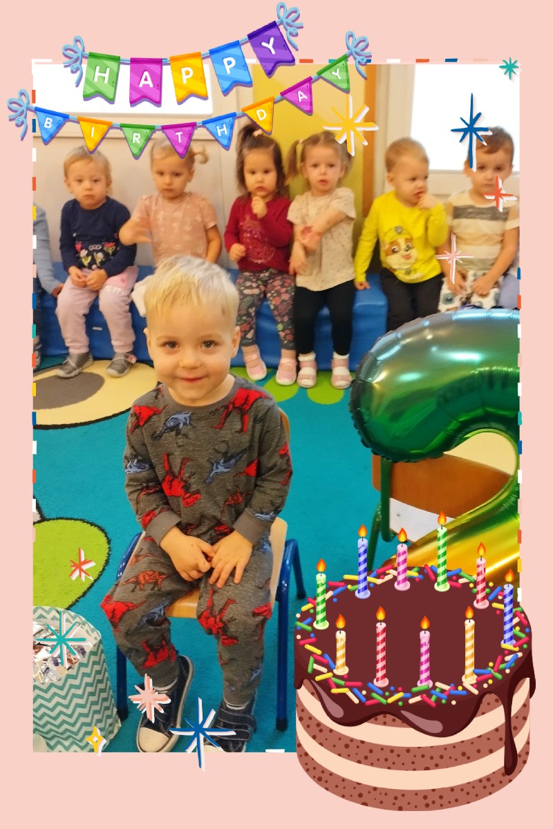 W grupie Muchomorki swoje 2 urodziny obchodził Milanek. Tradycyjne całą grupą odśpiewaliśmy głośne sto lat oraz złożyliśmy Solenizantowi serdeczne życzenia. Milanek w podziękowaniu przyniósł dla wszystkich dzieci słodki poczęstunek.