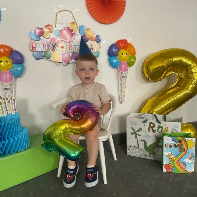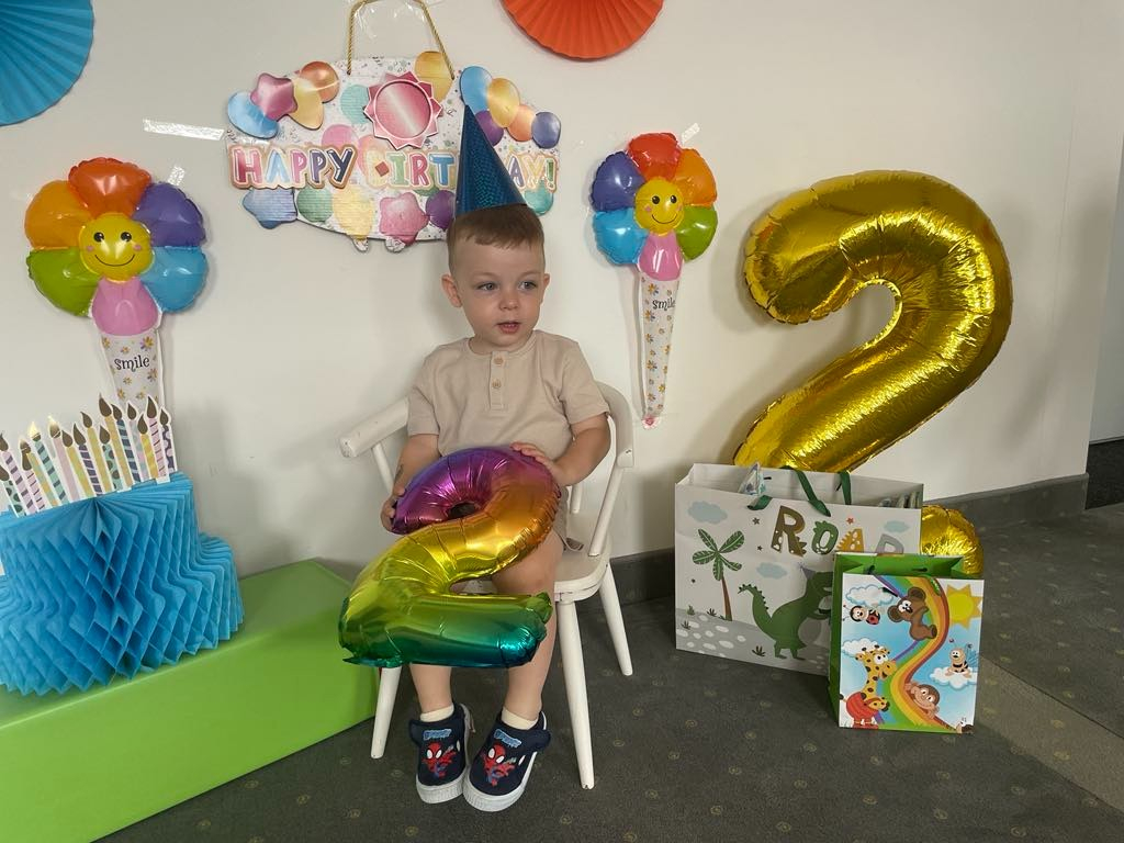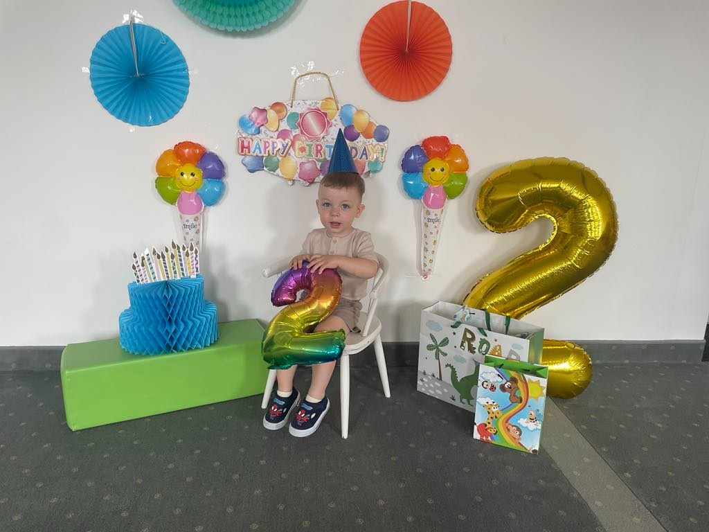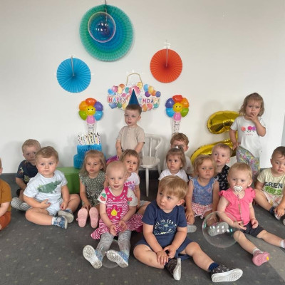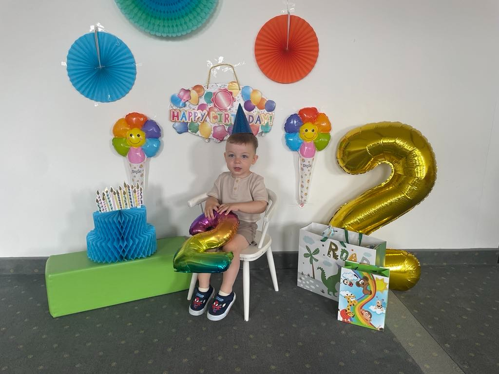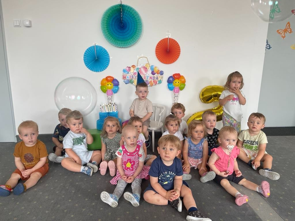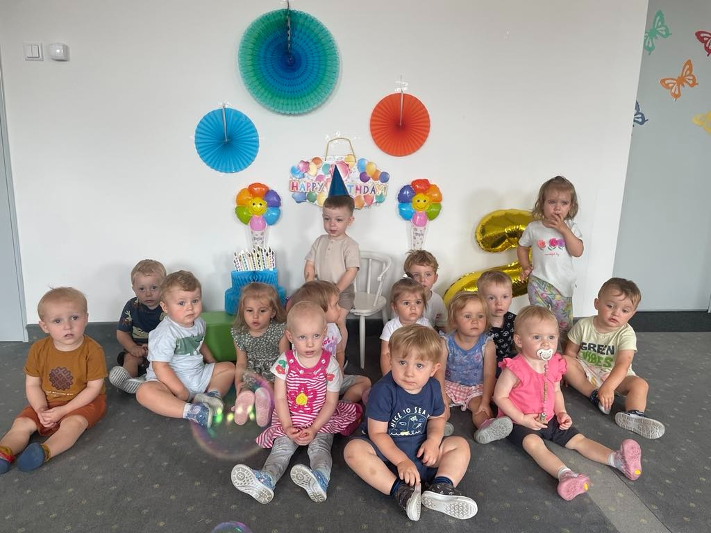 Zdjęcie przedstawia dzieci podczas zabawy urodzinowej