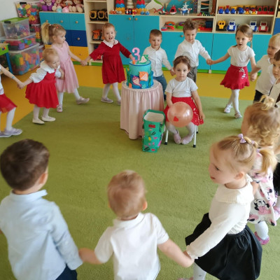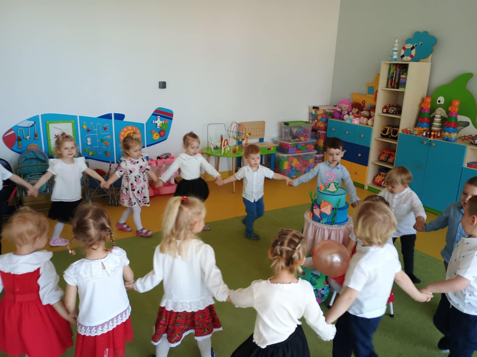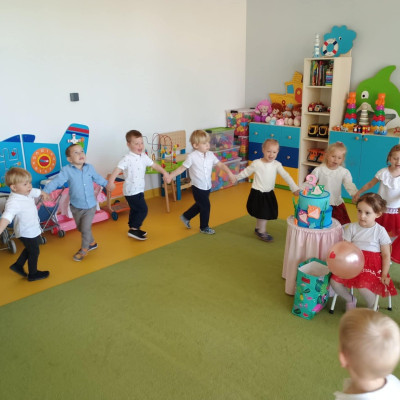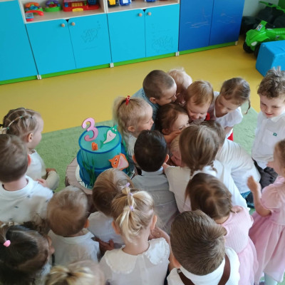 Zdjęcie przedstawia dzieci świętujące urodziny.
