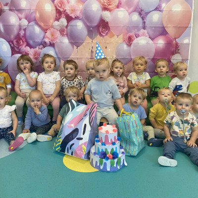 Zdjęcie przedstawia dzieci świętujące urodziny