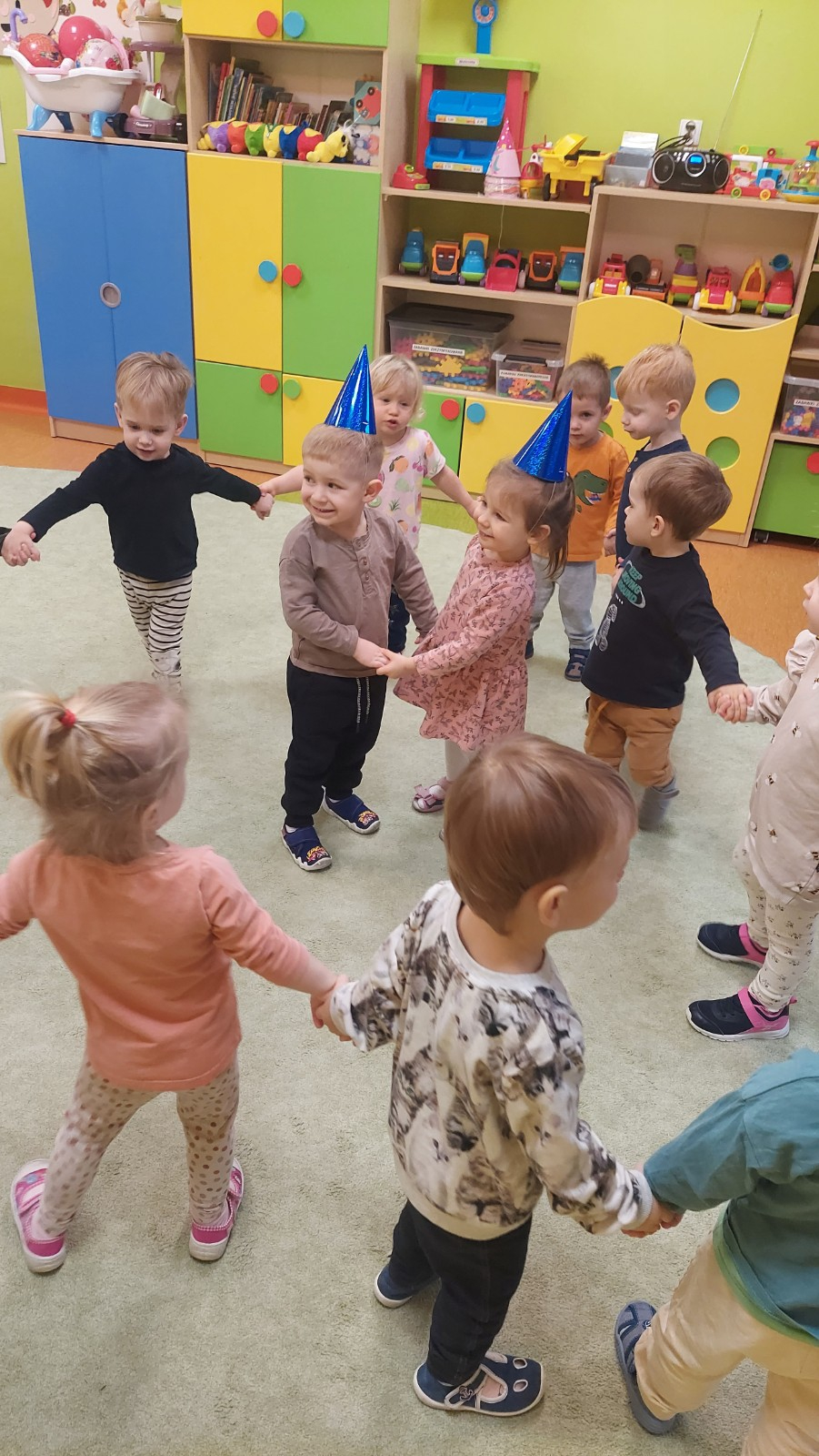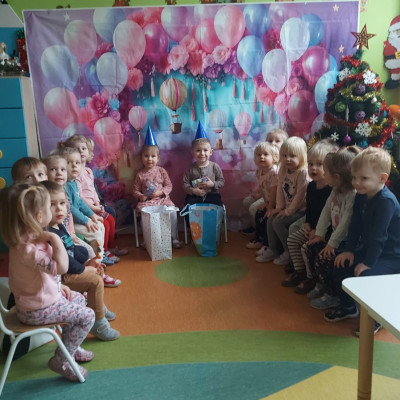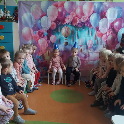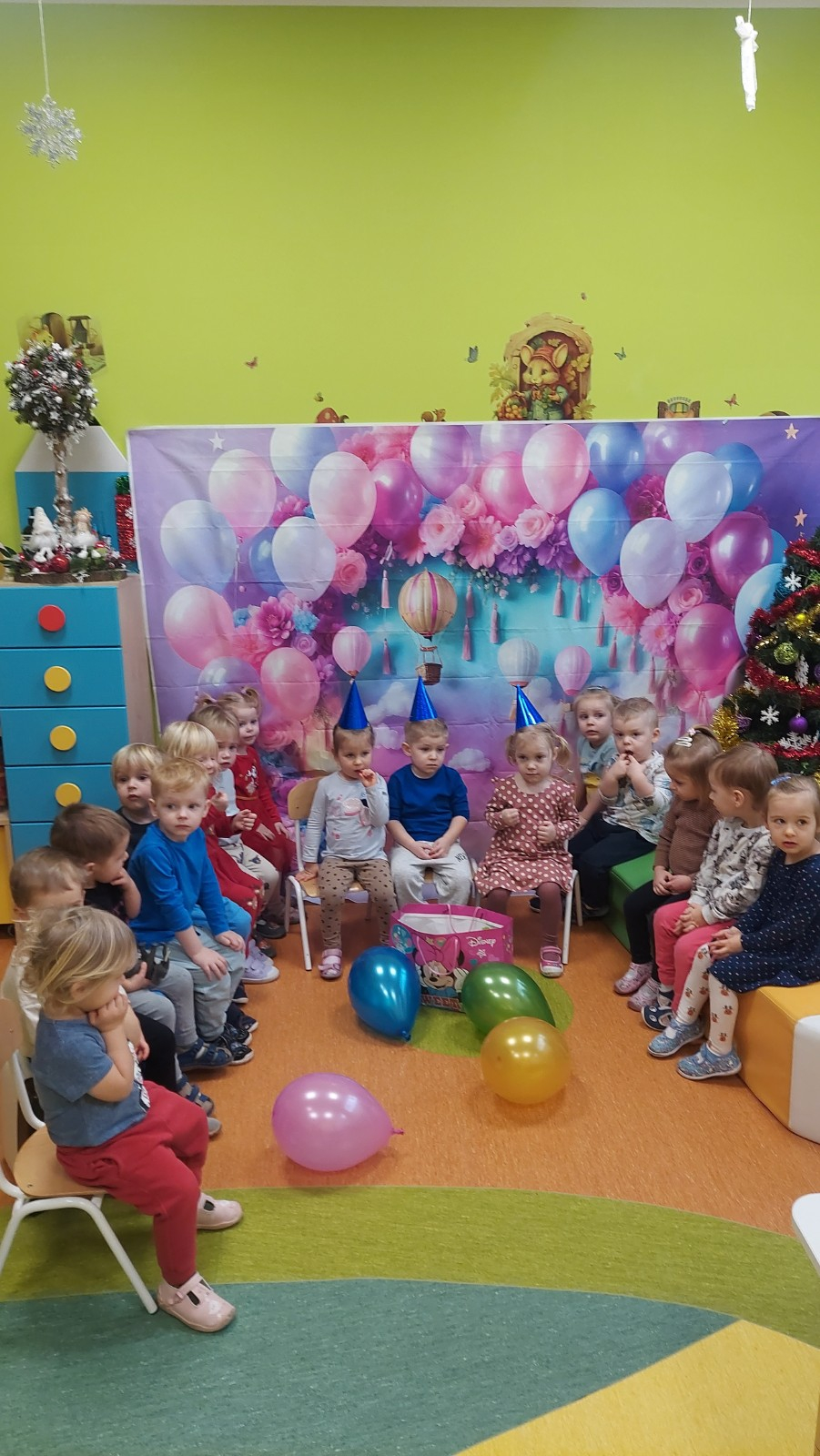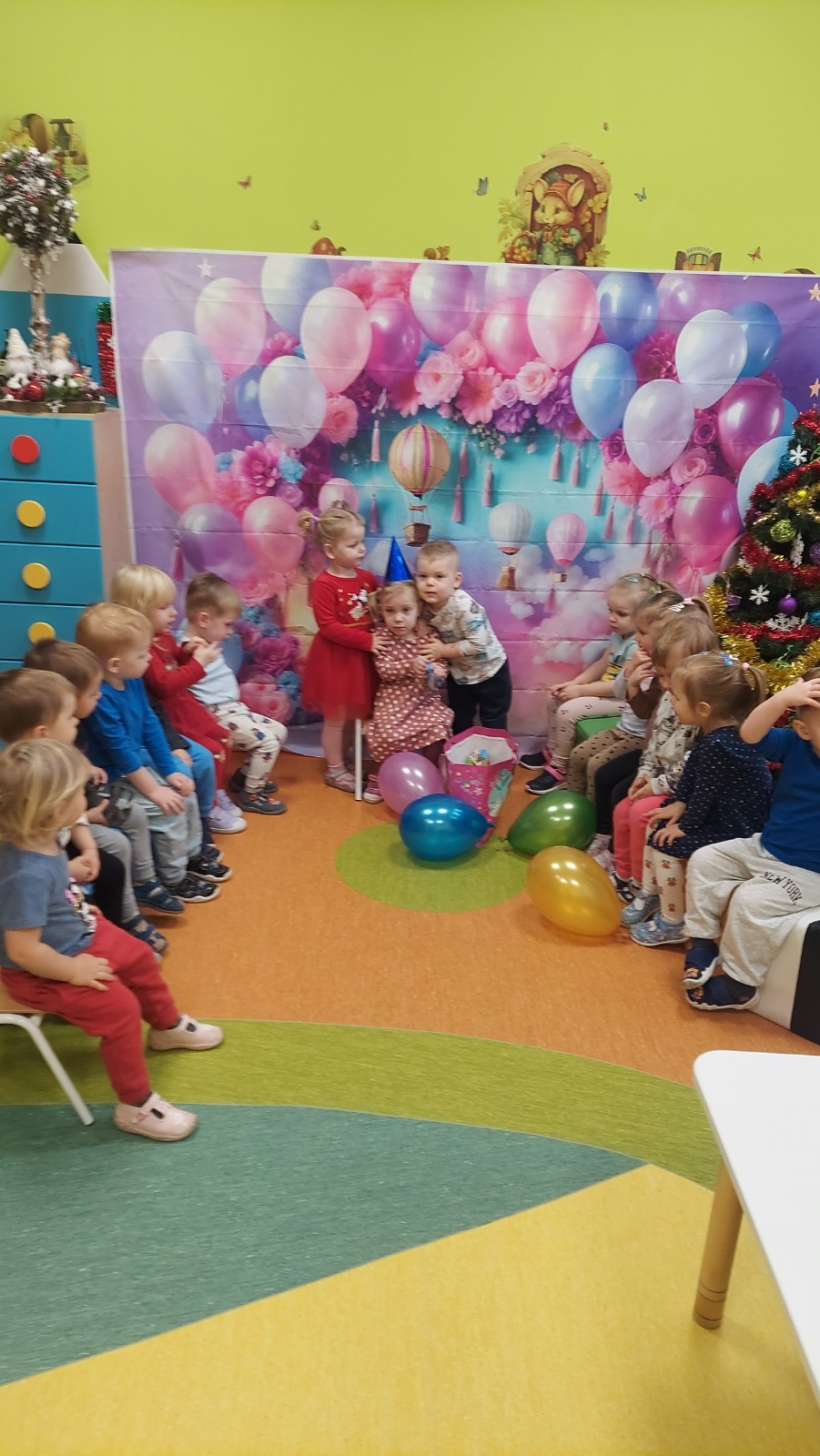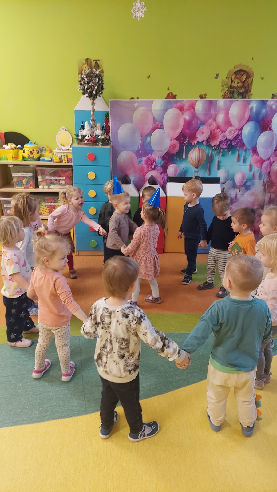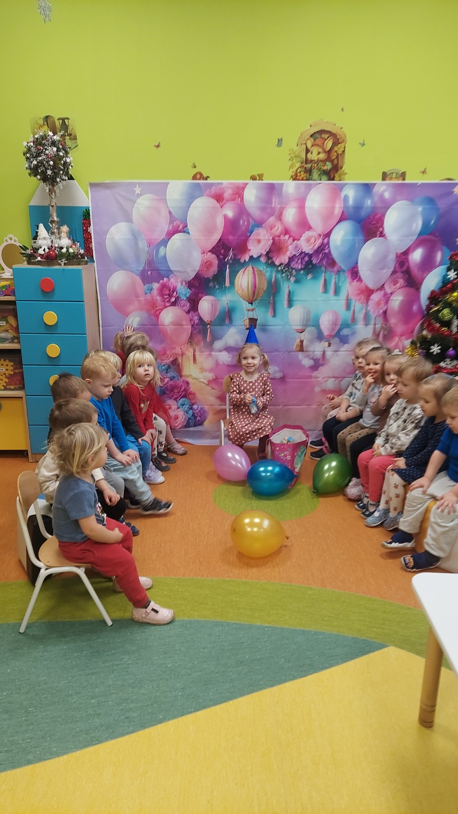 W tym miejscu na grupie Rybki swoje trzecie urodziny obchodzili Ola, Małgosia i Aleksander. Tradycyjnie wszystkie dzieci wraz z paniami odśpiewały solenizantom sto lat , i złożyły życzenia :