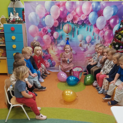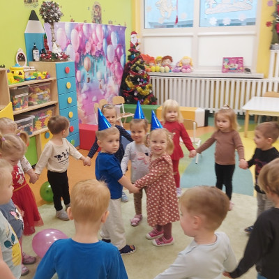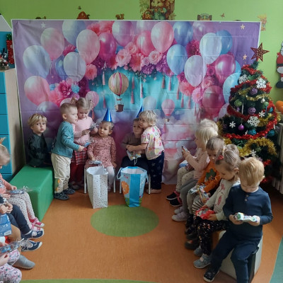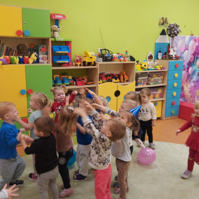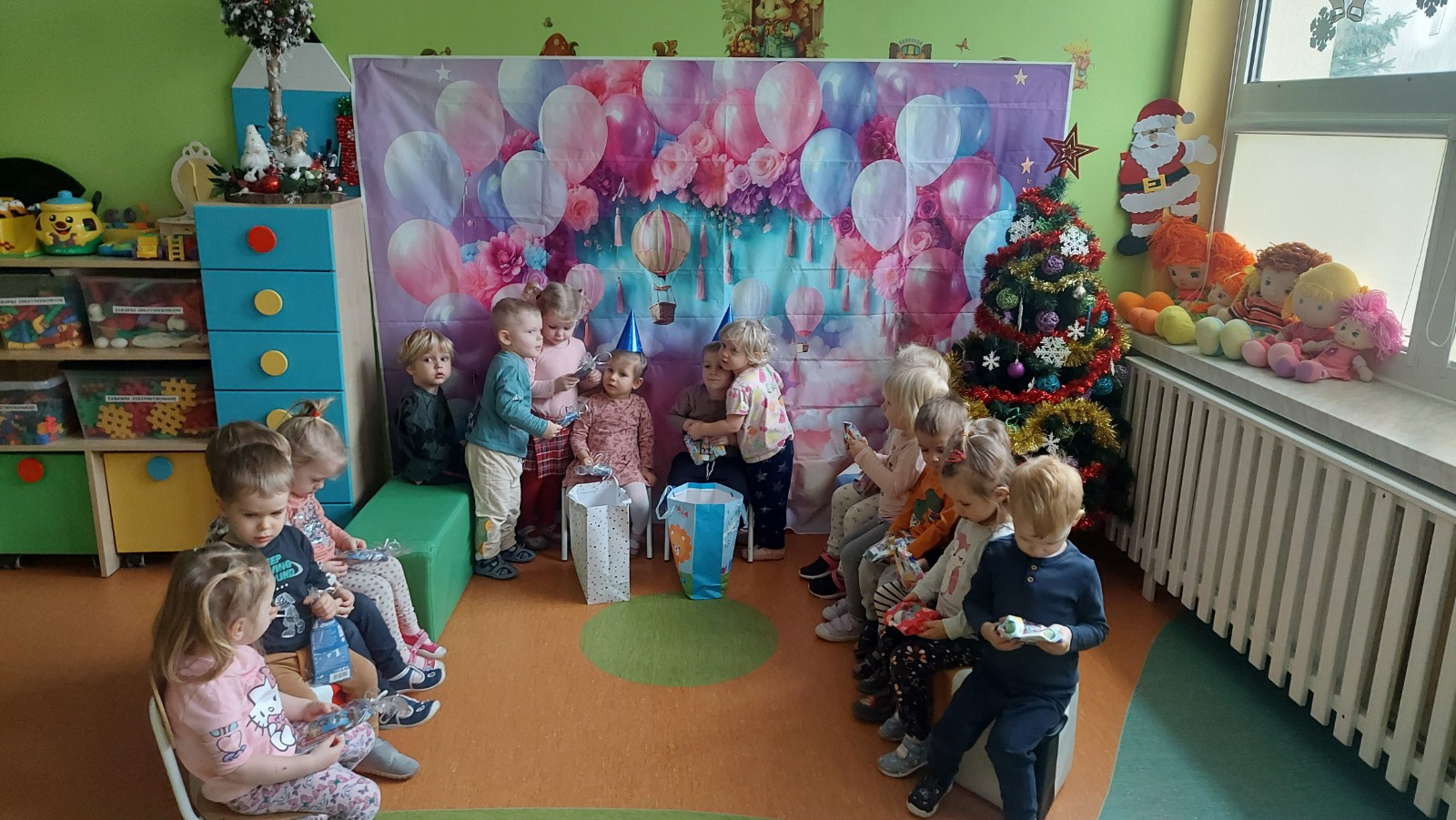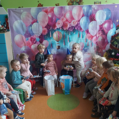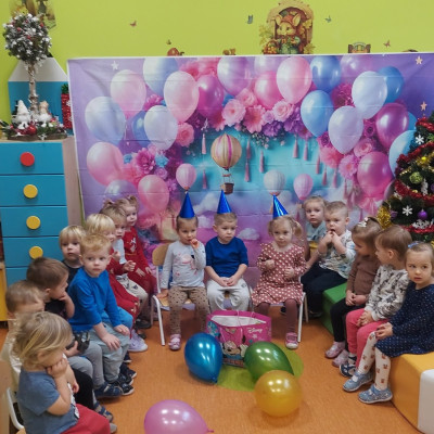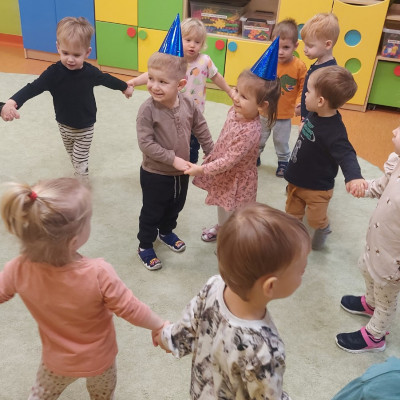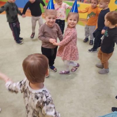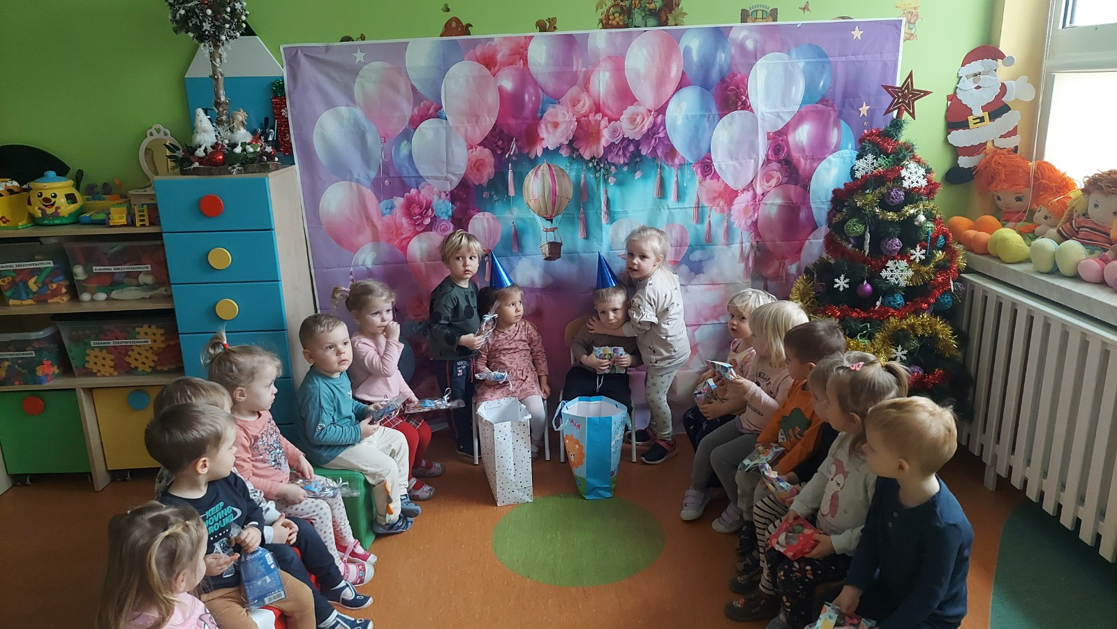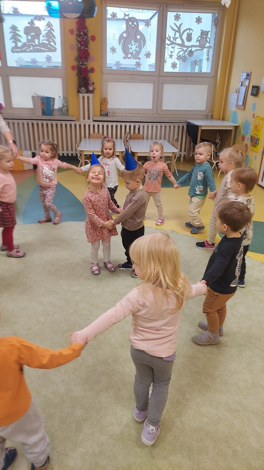W tym miejscu na grupie Rybki swoje trzecie urodziny obchodzili Ola, Małgosia i Aleksander. Tradycyjnie wszystkie dzieci wraz z paniami odśpiewały solenizantom sto lat , i złożyły życzenia :