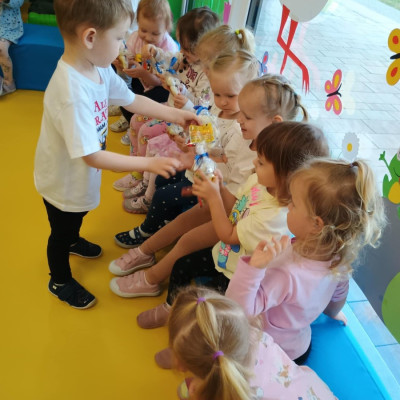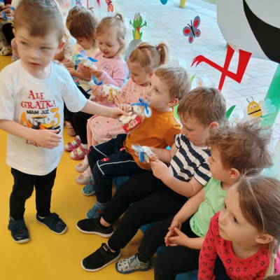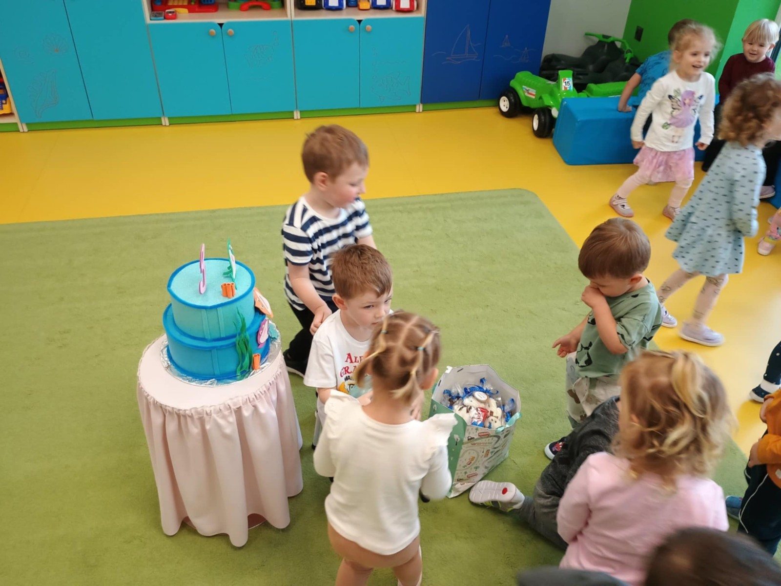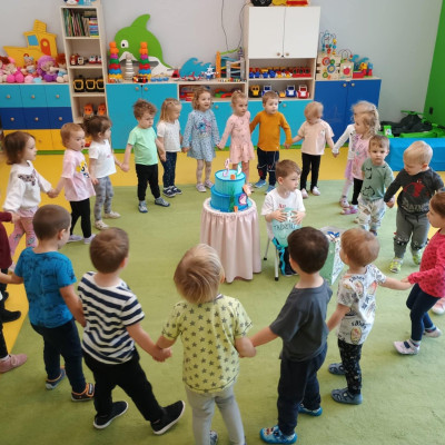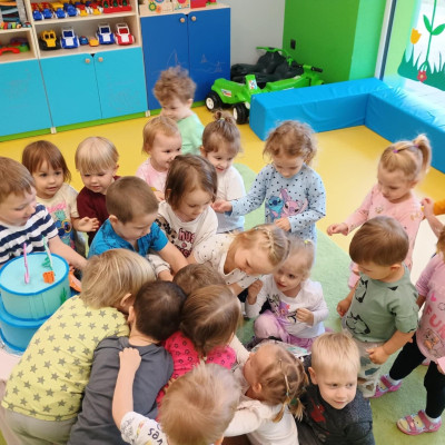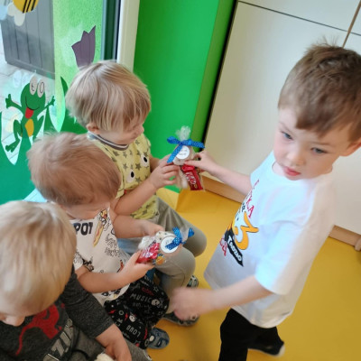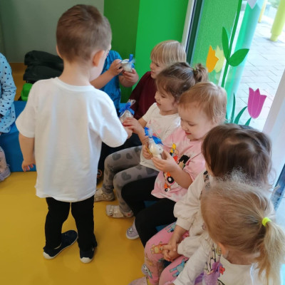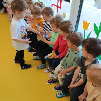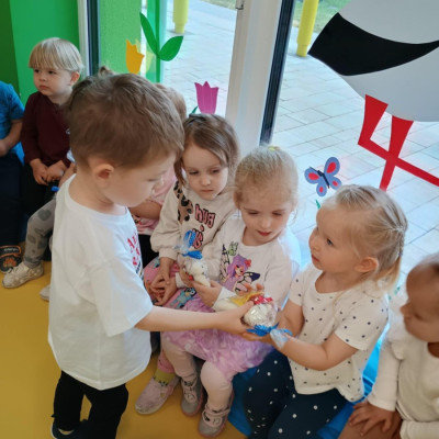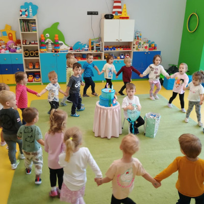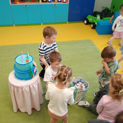 4Zdjęcie przedstawia dzieci podczas zabawy urodzinowej kolegi