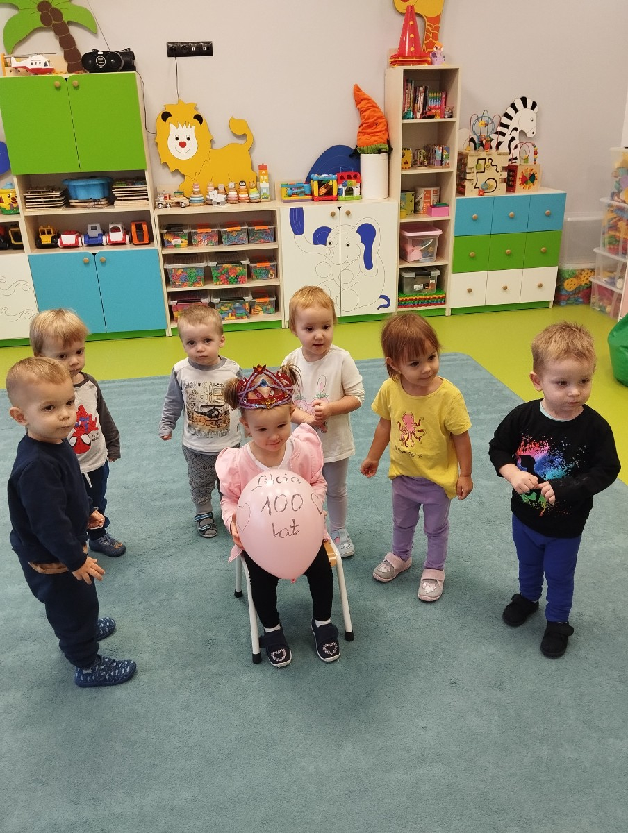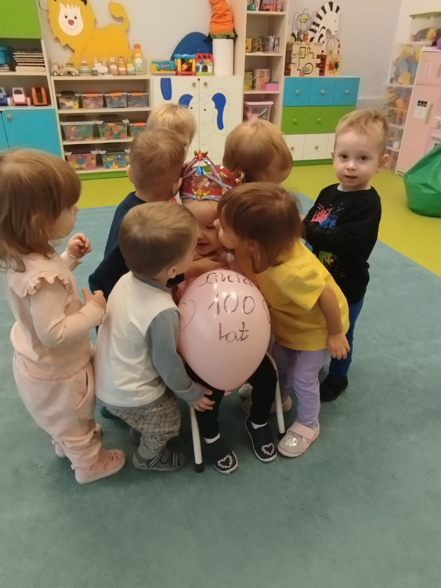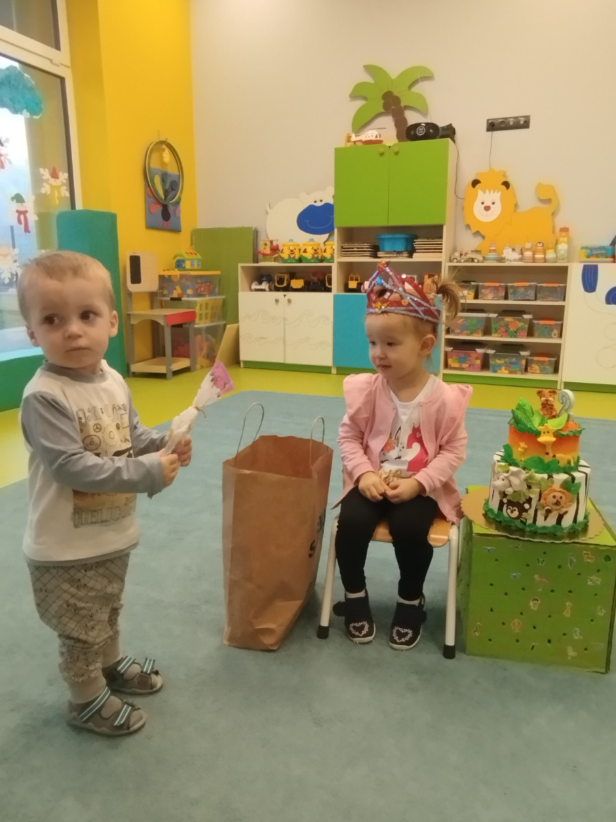 Zdjęcie przedstawia dzieci świętujące urodziny koleżanki