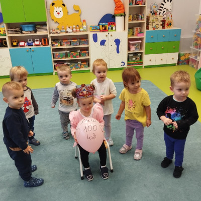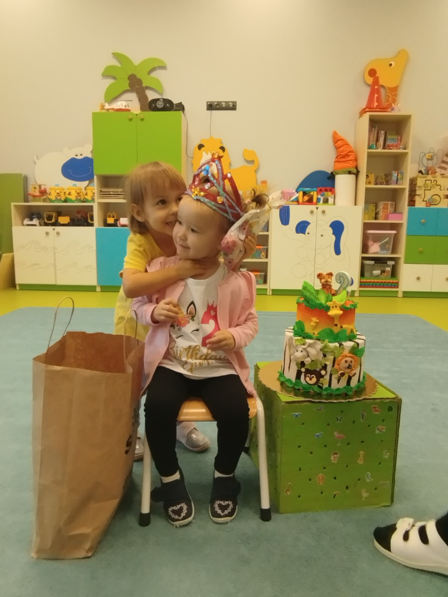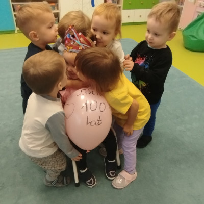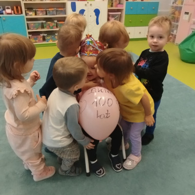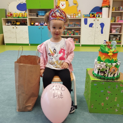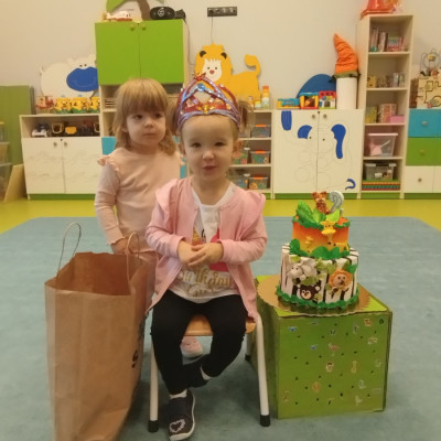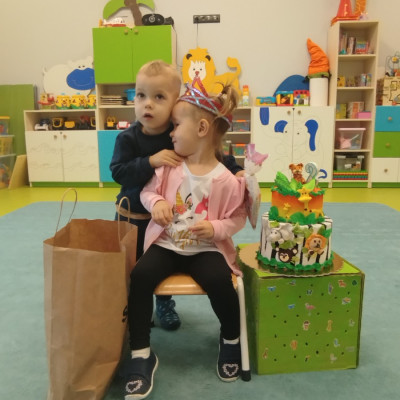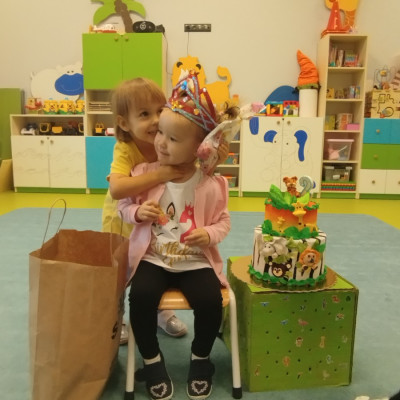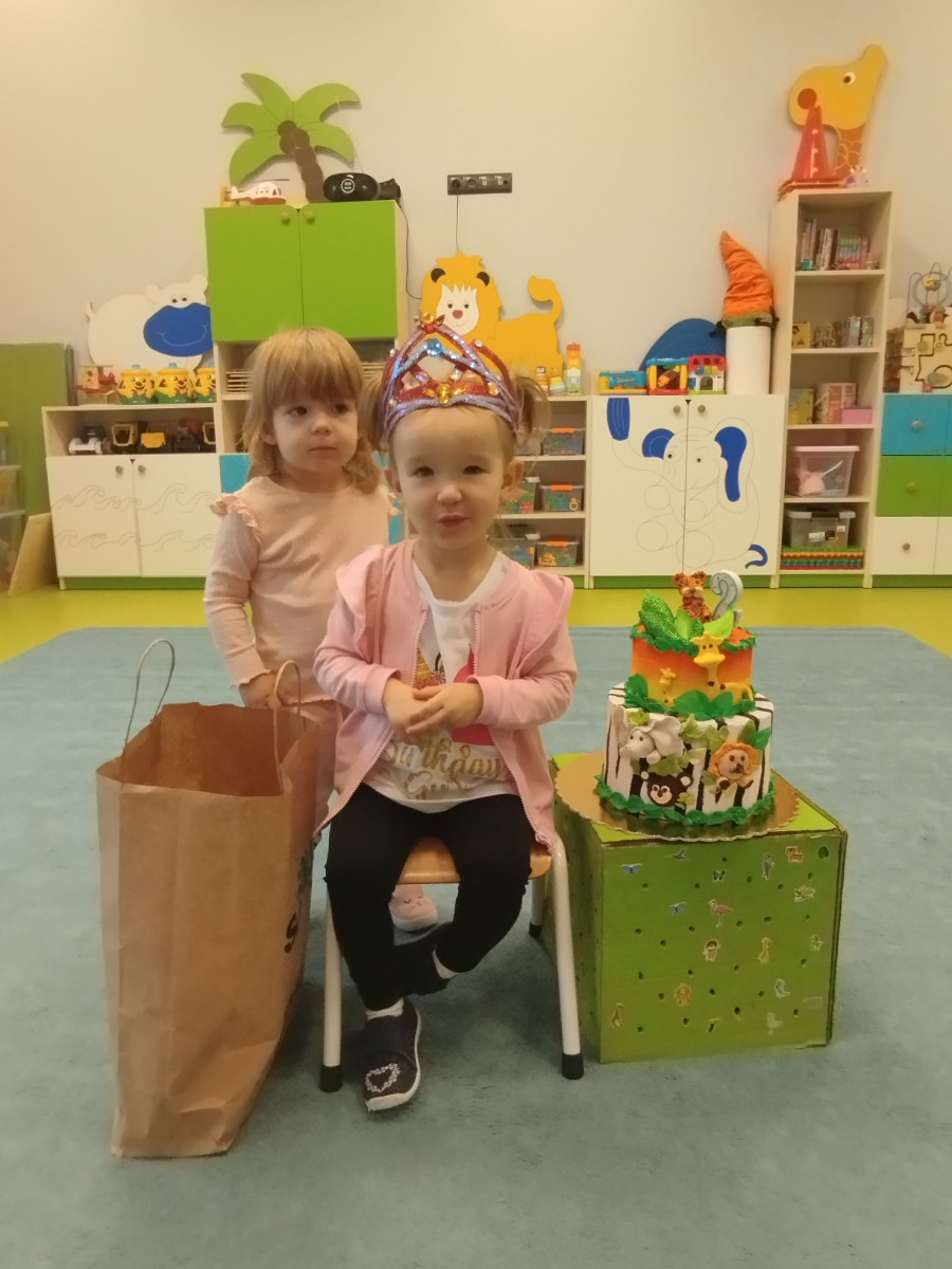 Zdjęcie przedstawia dzieci świętujące urodziny koleżanki