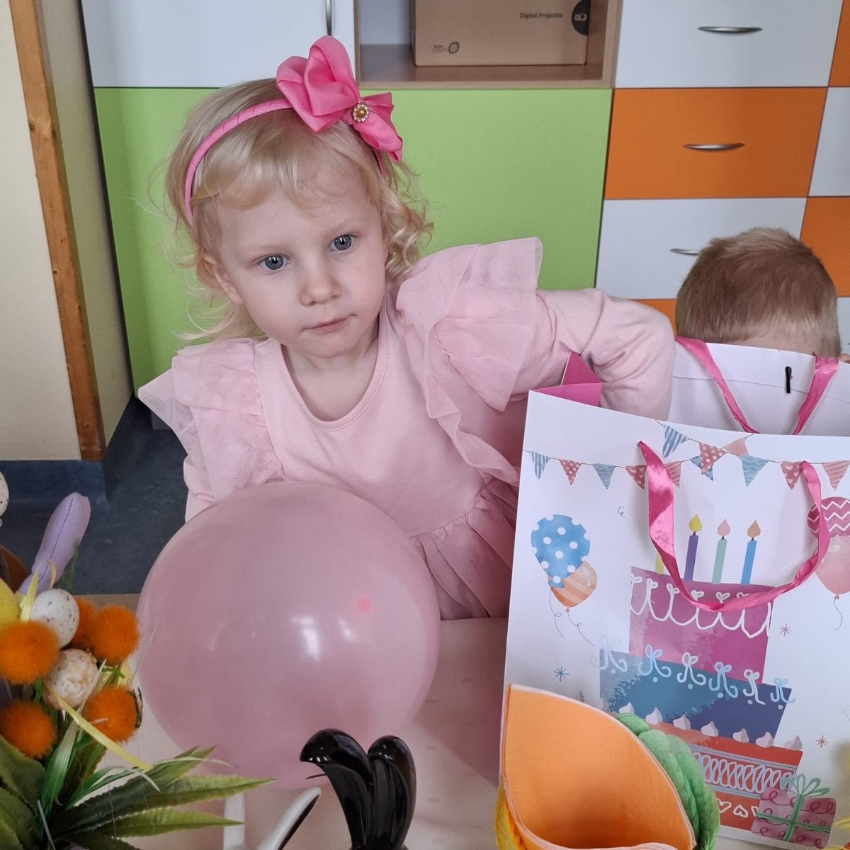 Zdjęcie przedstawia dziecko świętujące urodziny.