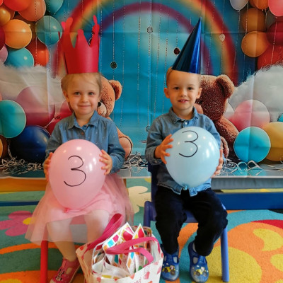 Zdjęcie przedstawia dzieci świętujące urodziny