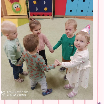 Zdjęcie przedstawia dzieci świętujące urodziny Sary