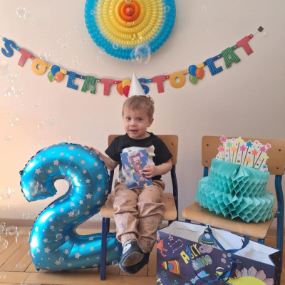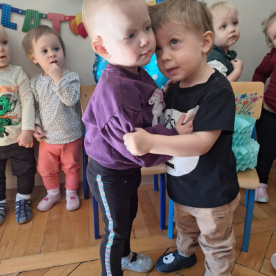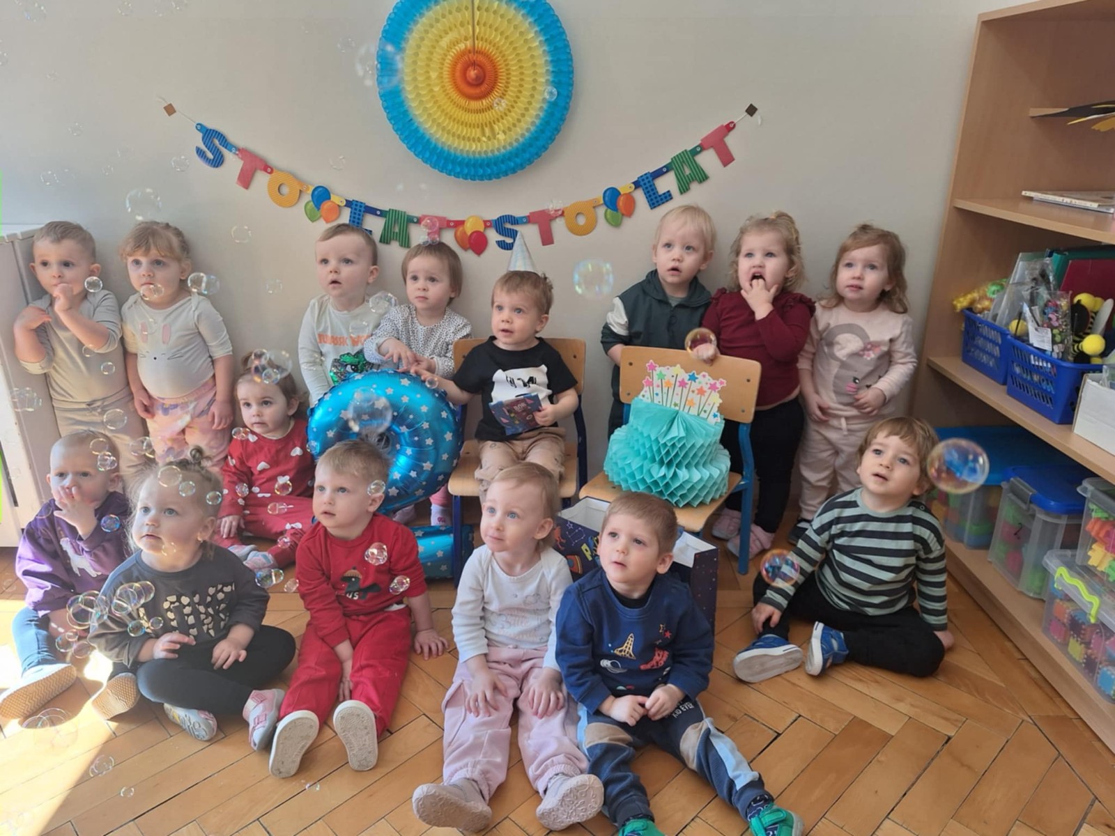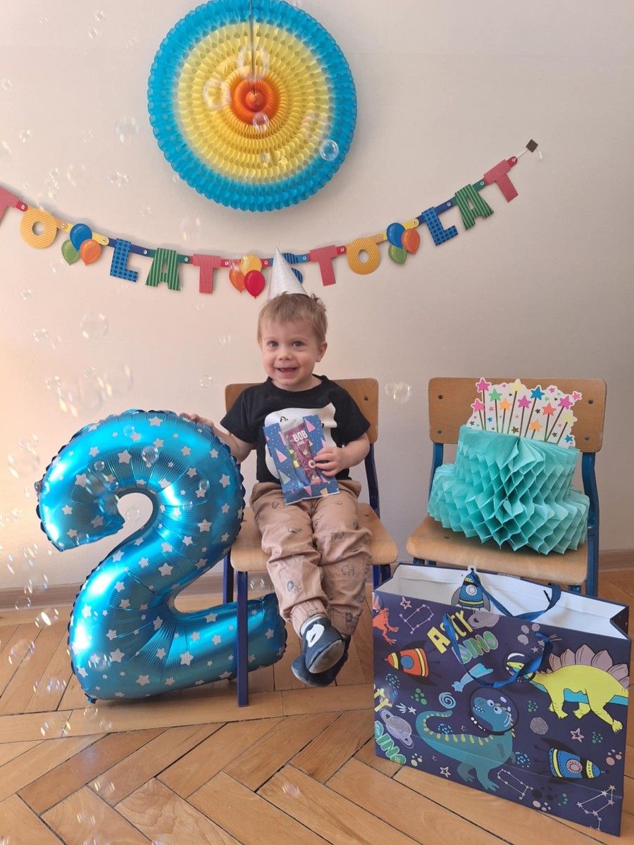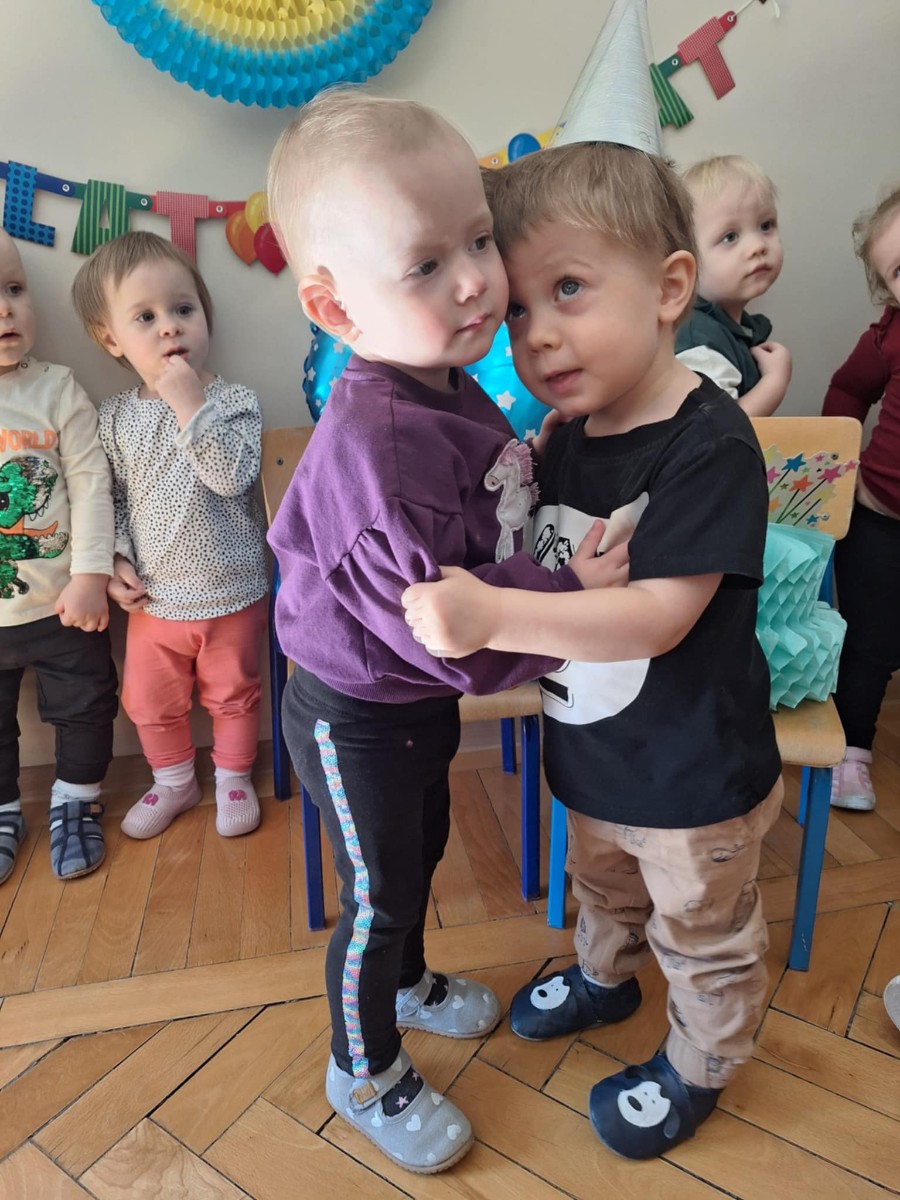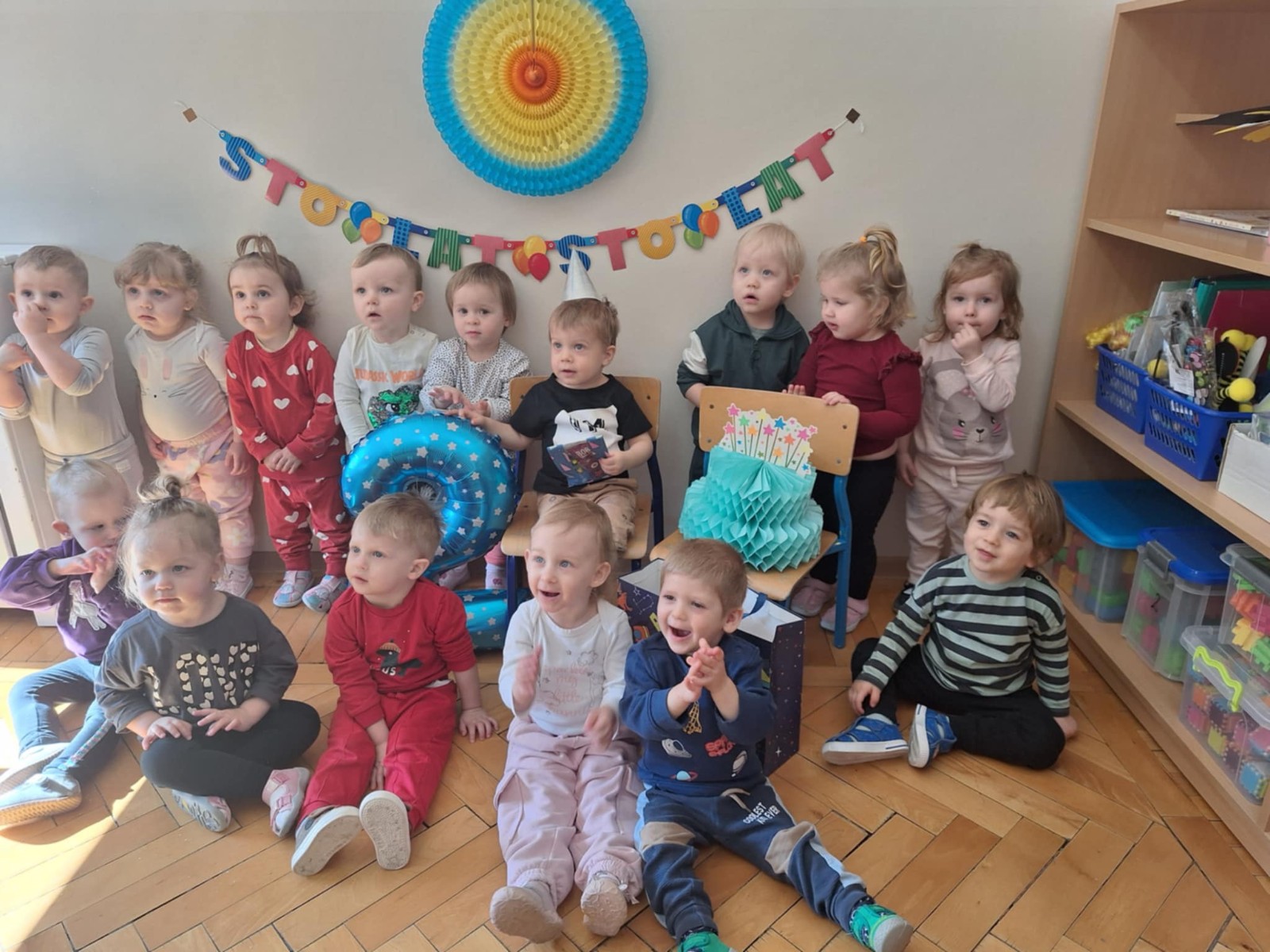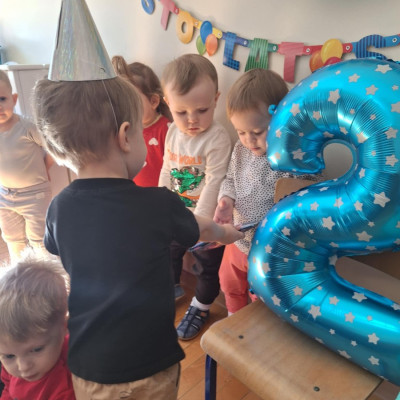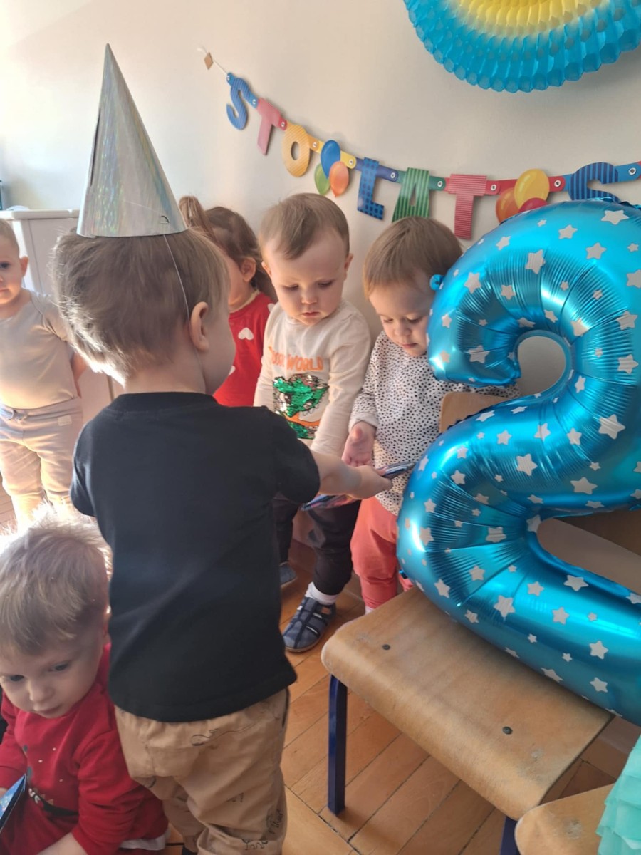 Zdjęcie przedstawia dzieci świętujące urodziny kolegi
