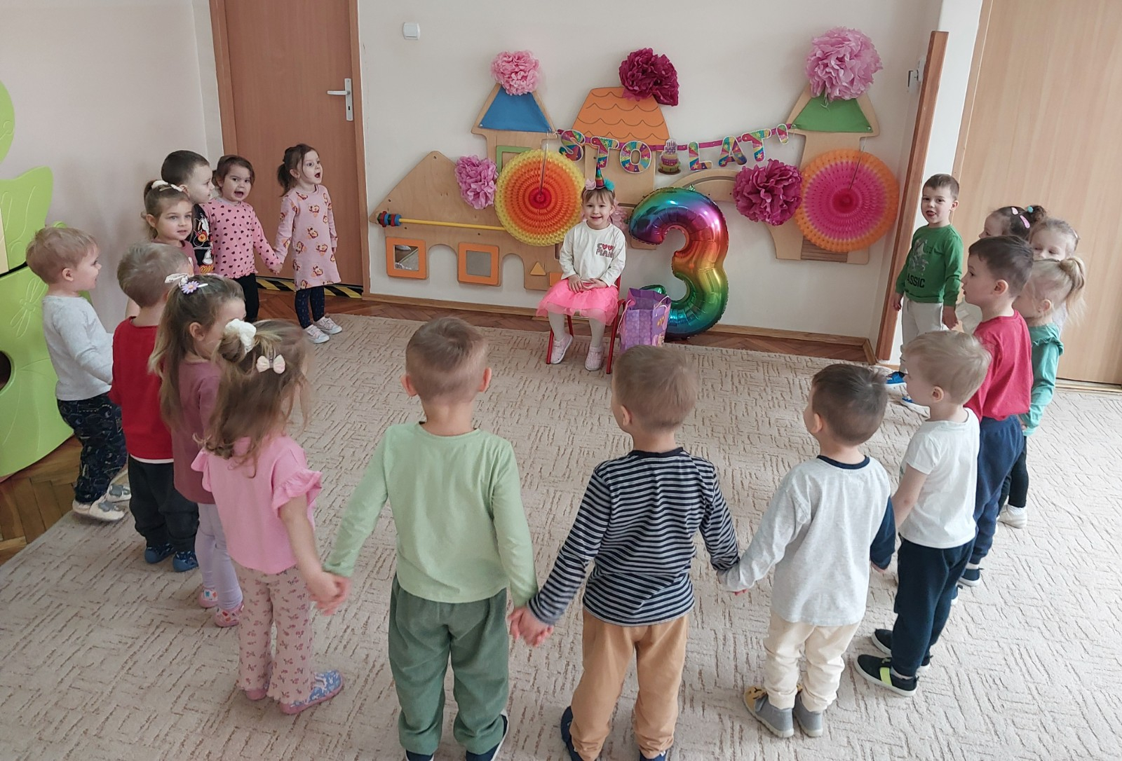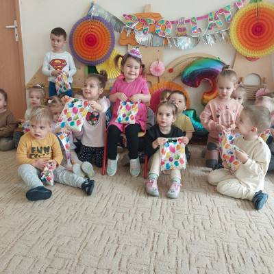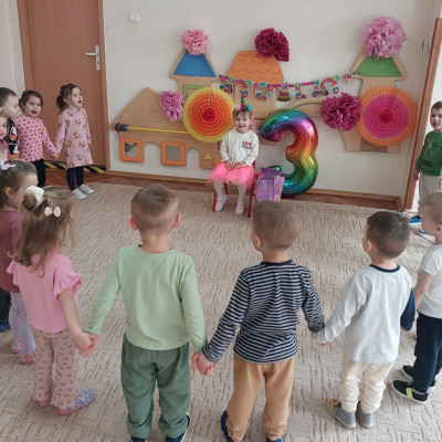 Zdjęcie przedstawia dzieci świętujące urodziny
