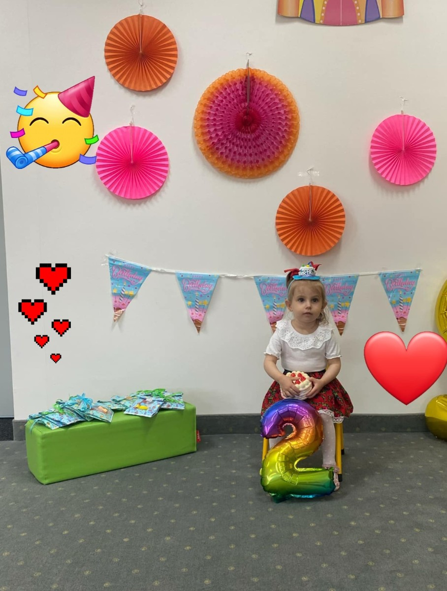 Środa w grupie " Biedronek" stała się uroczystym dniem nie tylko ze względu na święta narodowe, ale też z racji ukończenia przez Emilkę 2 roku życia.🎂🥳     "Biedroneczki"  wraz z ciociami odśpiewały "Sto lat" i złożyły  "małej księżniczce" serdeczne  życzenia.🌹🎁🎈