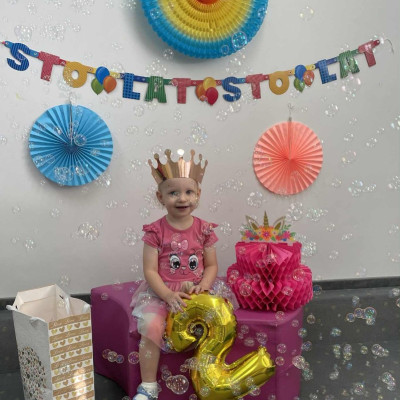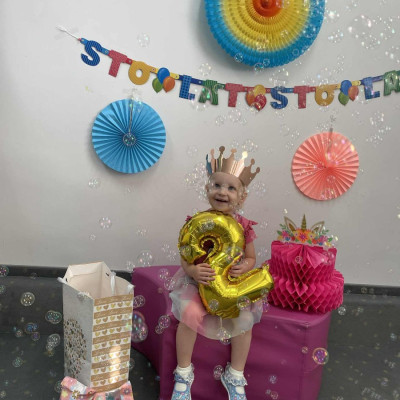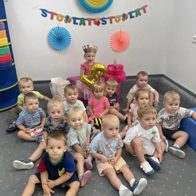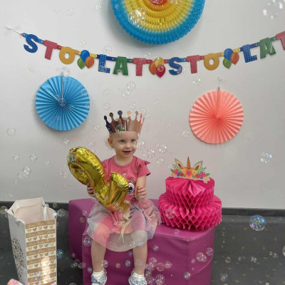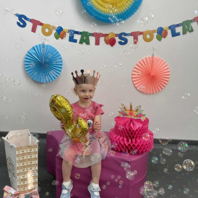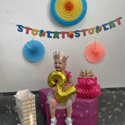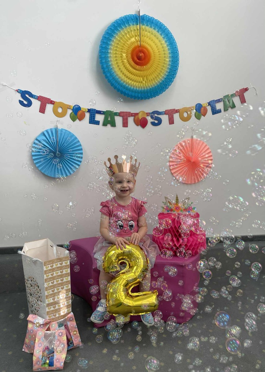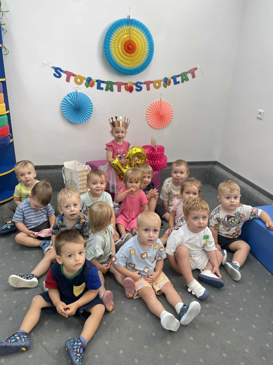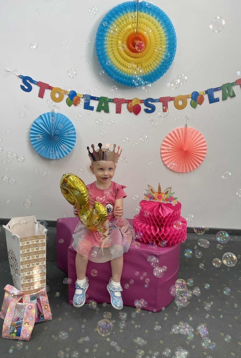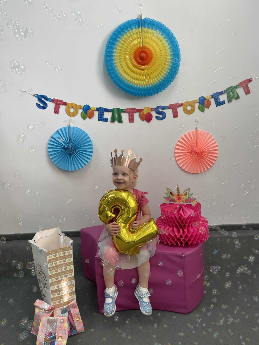 Zdjęcie przedstawia dzieci podczas zabawy urodzinowej