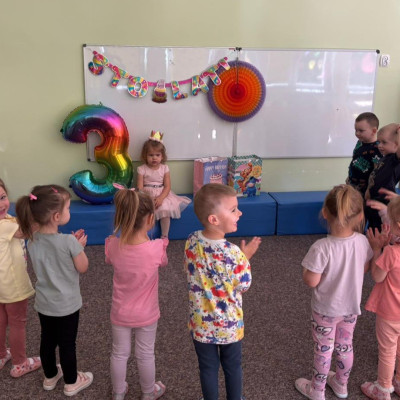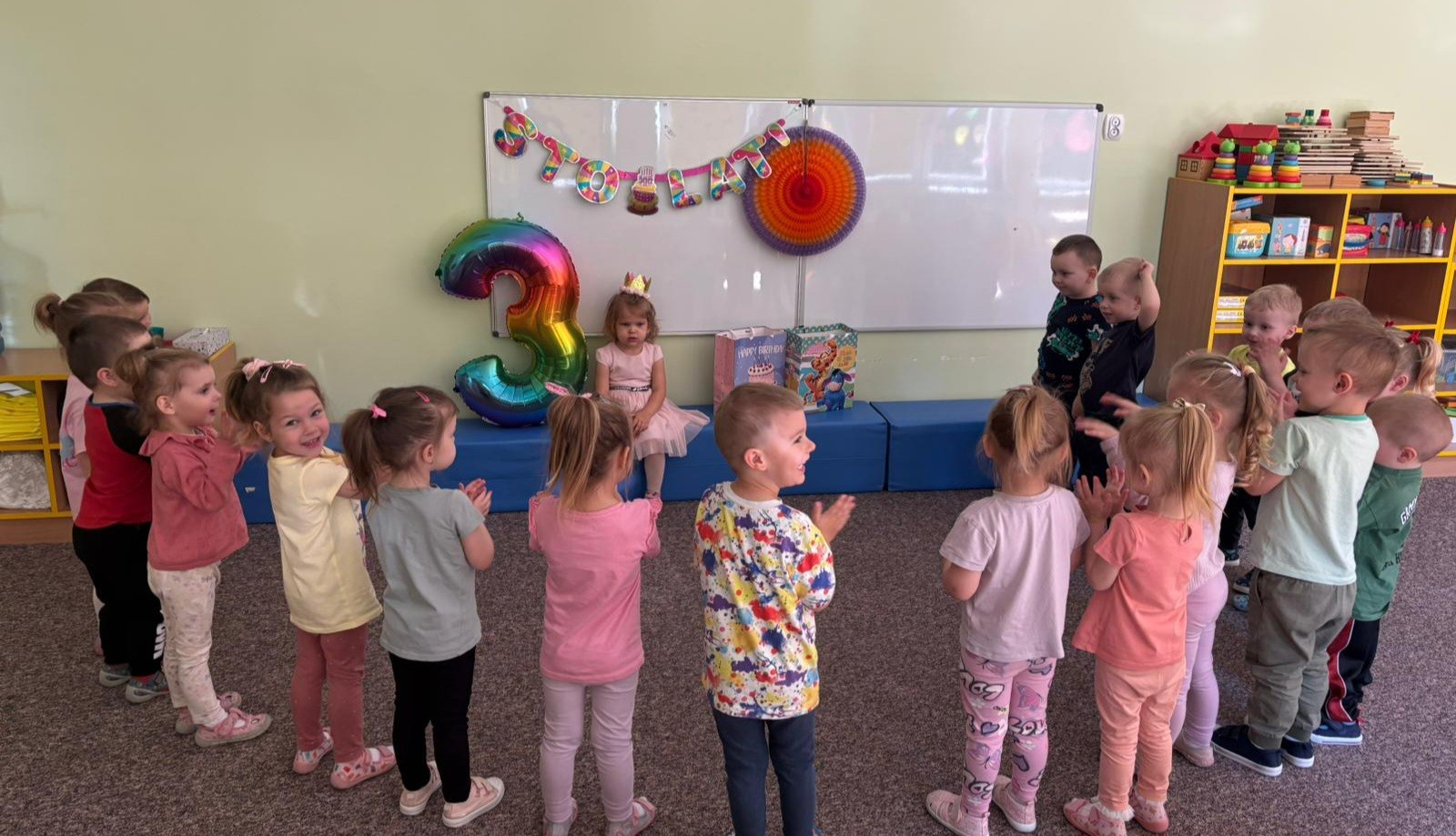 Zdjęcie przedstawia dzieci świętujące urodziny