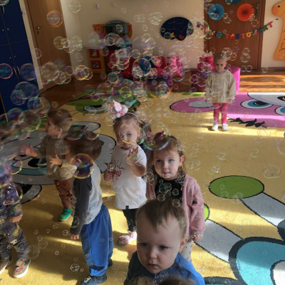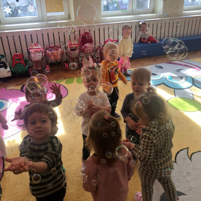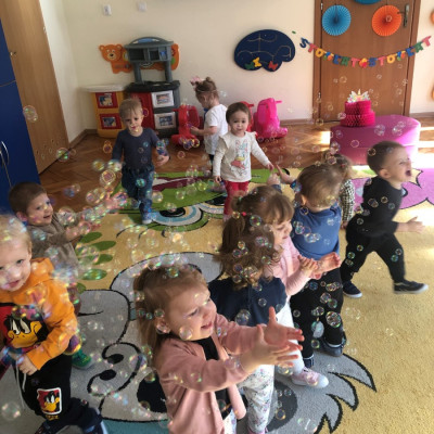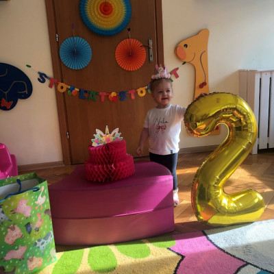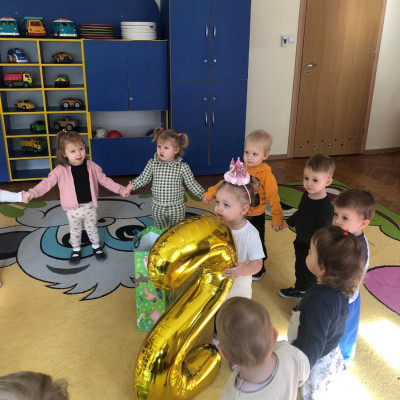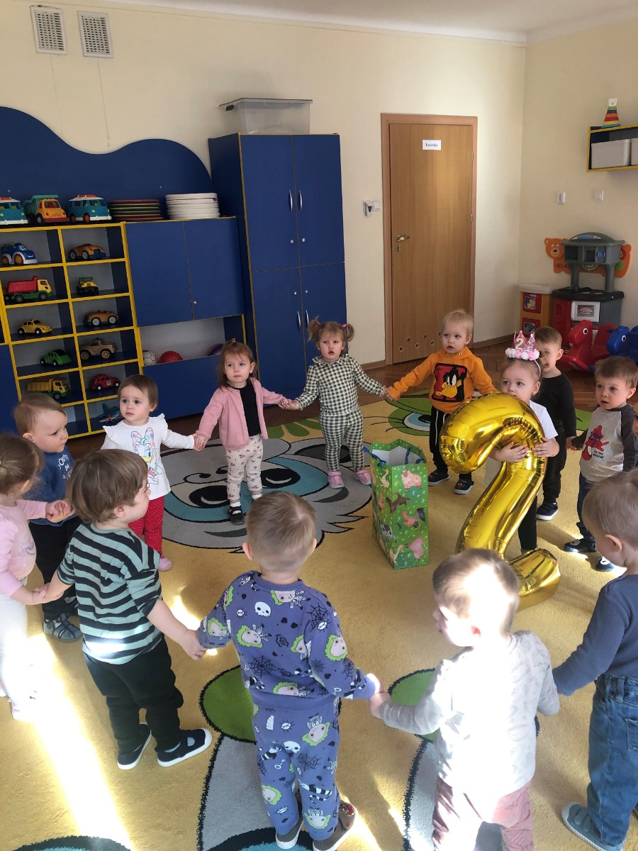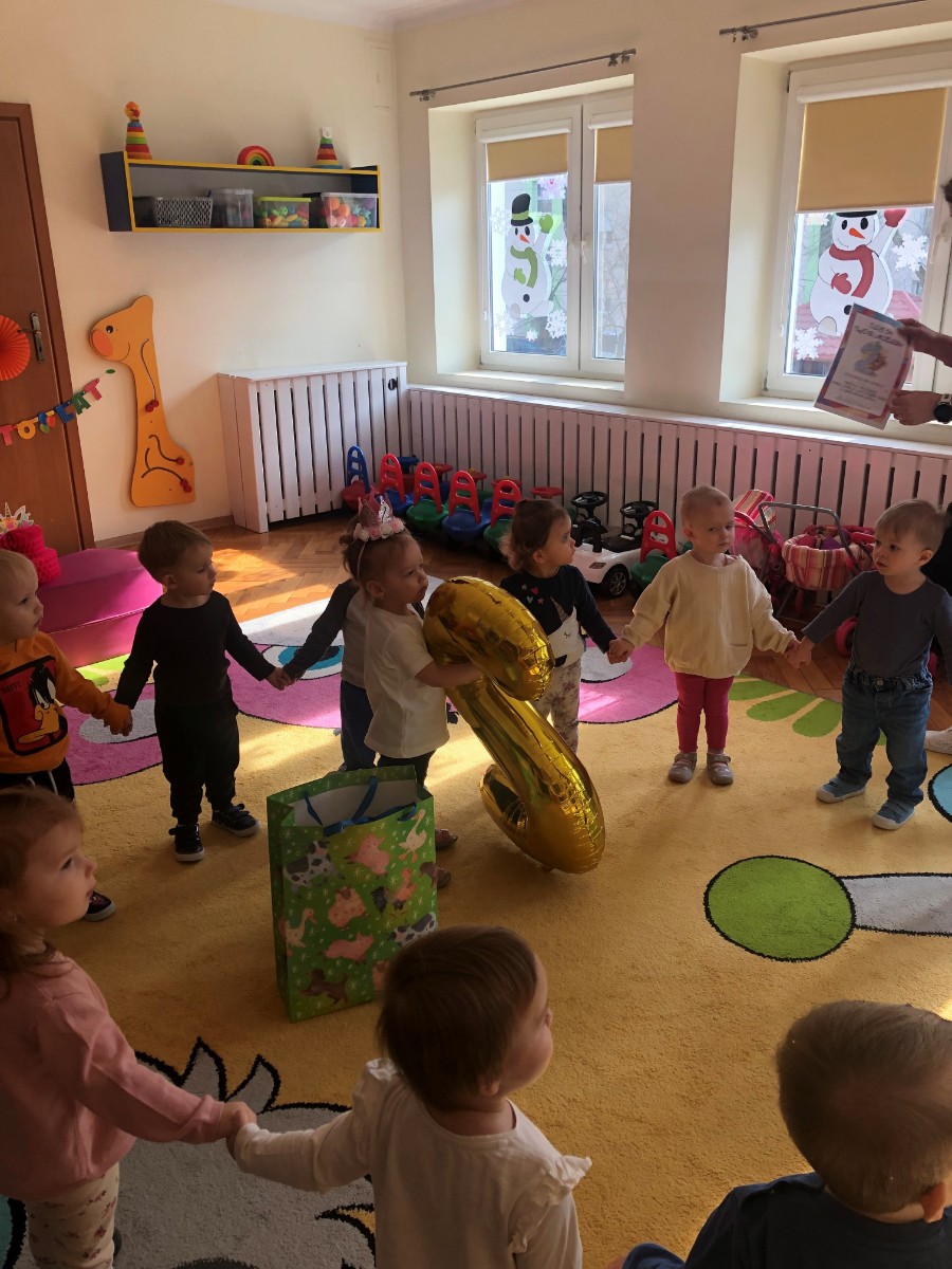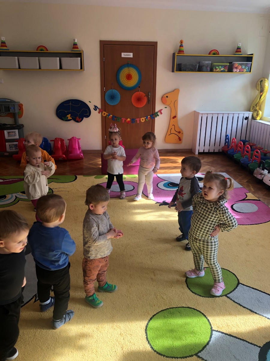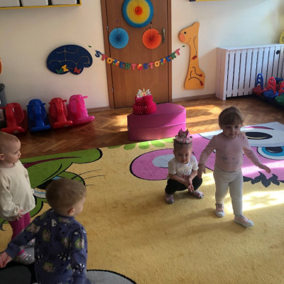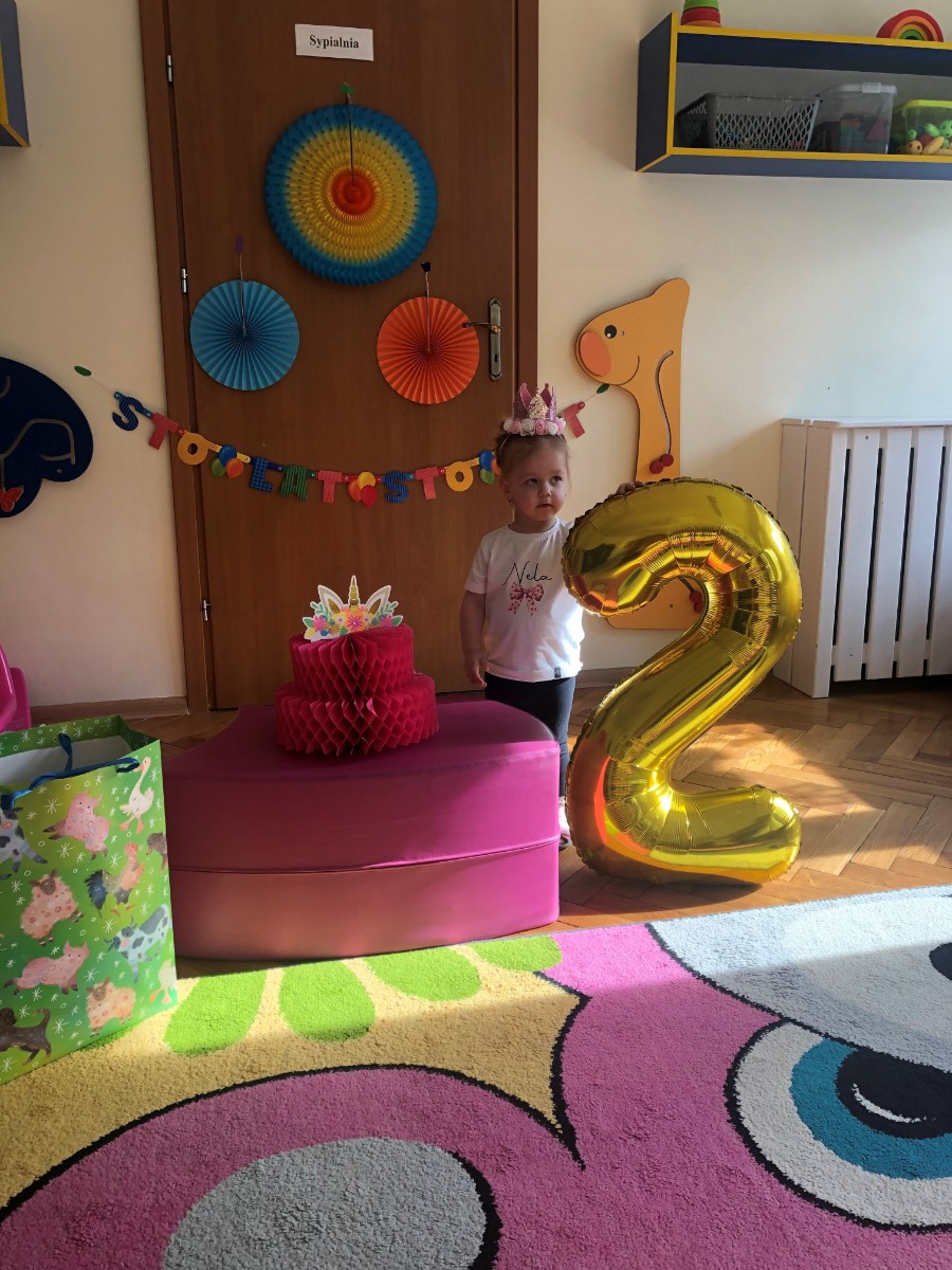 Zdjęcia przedstawiają dzieci podczas świętowania urodzin swojej koleżanki