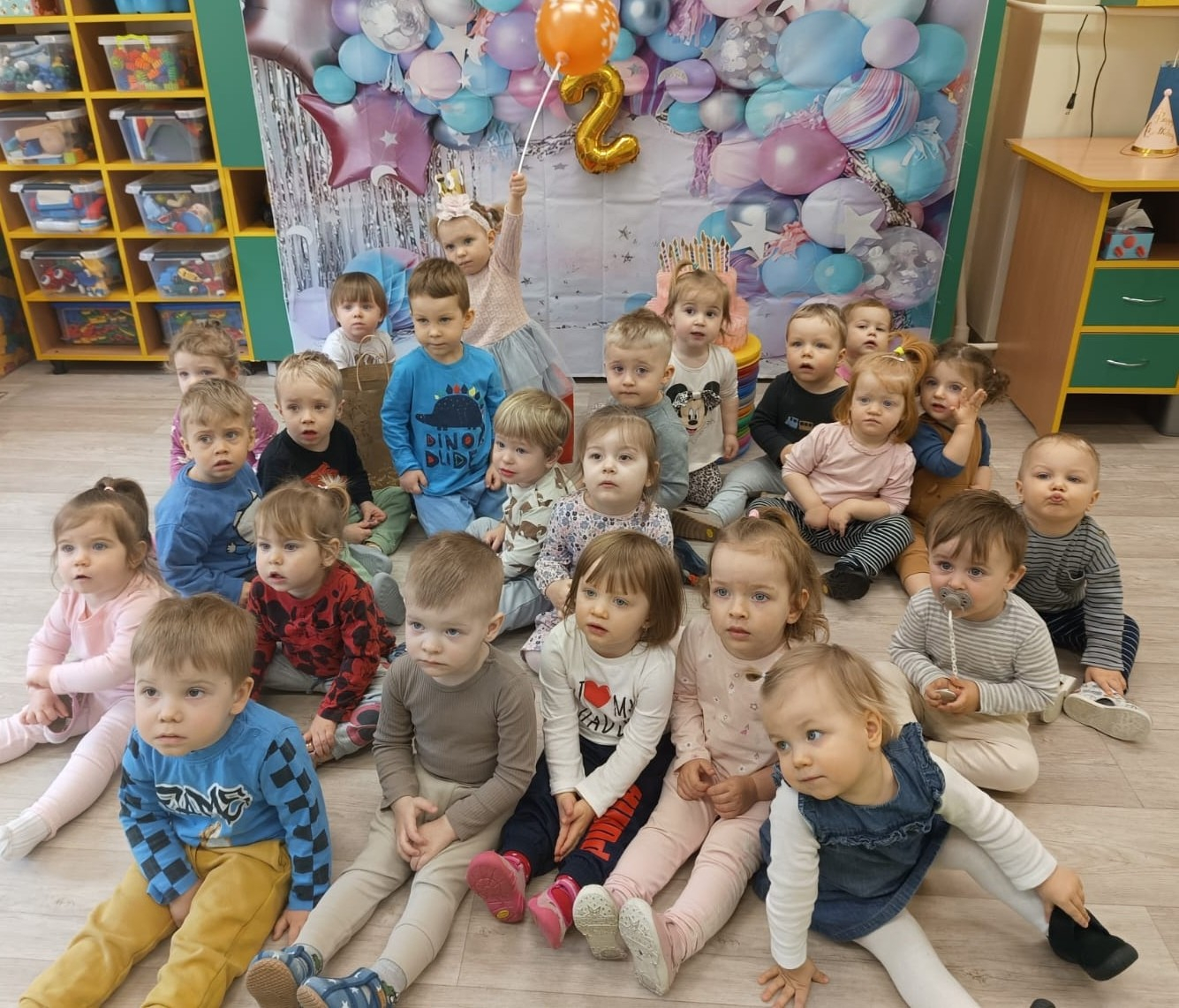 Zdjęcie przedstawia dzieci świętujące urodziny.