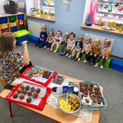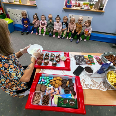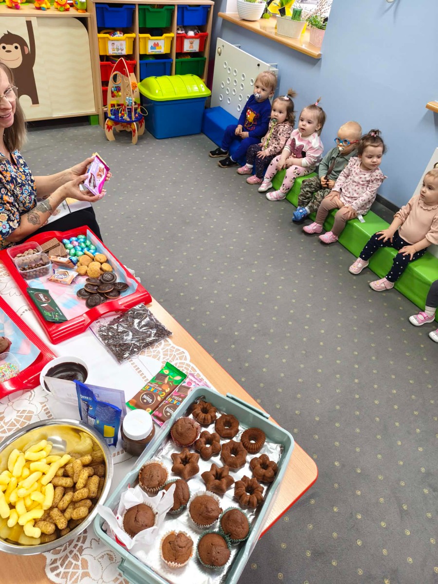 Dzień Czekolady w żłobku to radosne, sensoryczne święto (12 kwietnia) skupione na zabawie czekoladą i kakao. Zajęcia obejmują degustację , zabawy plastyczne oraz sensoryczne (wąchanie, dotyk). To okazja do poznania smaków i faktur, połączona z nauką o ziarnach kakaowca.