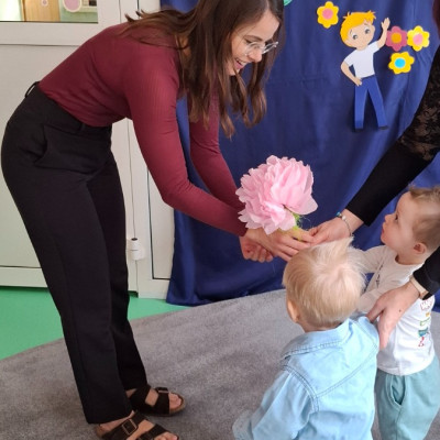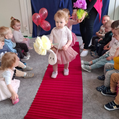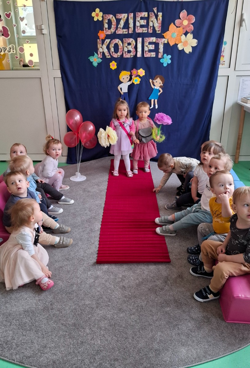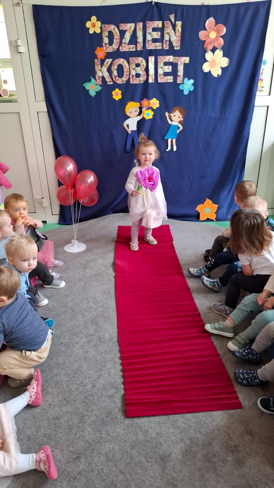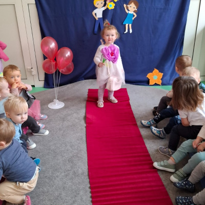 Oczywiście mowa o Dniu Kobiet..Święto to obchodziliśmy 7 marca na naszej grupie. Na początku zajęć cała grupa dowiedziała się jaką rolę w społeczeństwie pełnią kobiety oraz że szacunek , wdzięczność należy im okazywać zawsze a nie tylko w dniu ich święta.W ramach zajęć nasze małe kobietki mogły skorzystać z zabiegów w ,, mini spa" a następnie wzięły udział w pokazie mody. Nasze modelki pięknie ubrane przechadzały się z wielką gracją po czerwonym dywanie.