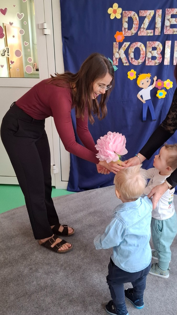 Następnie nadszedł czas na złożenie życzeń przez chłopców oraz odarowanie kobiet kwiatami zrobionymi z bibuły.