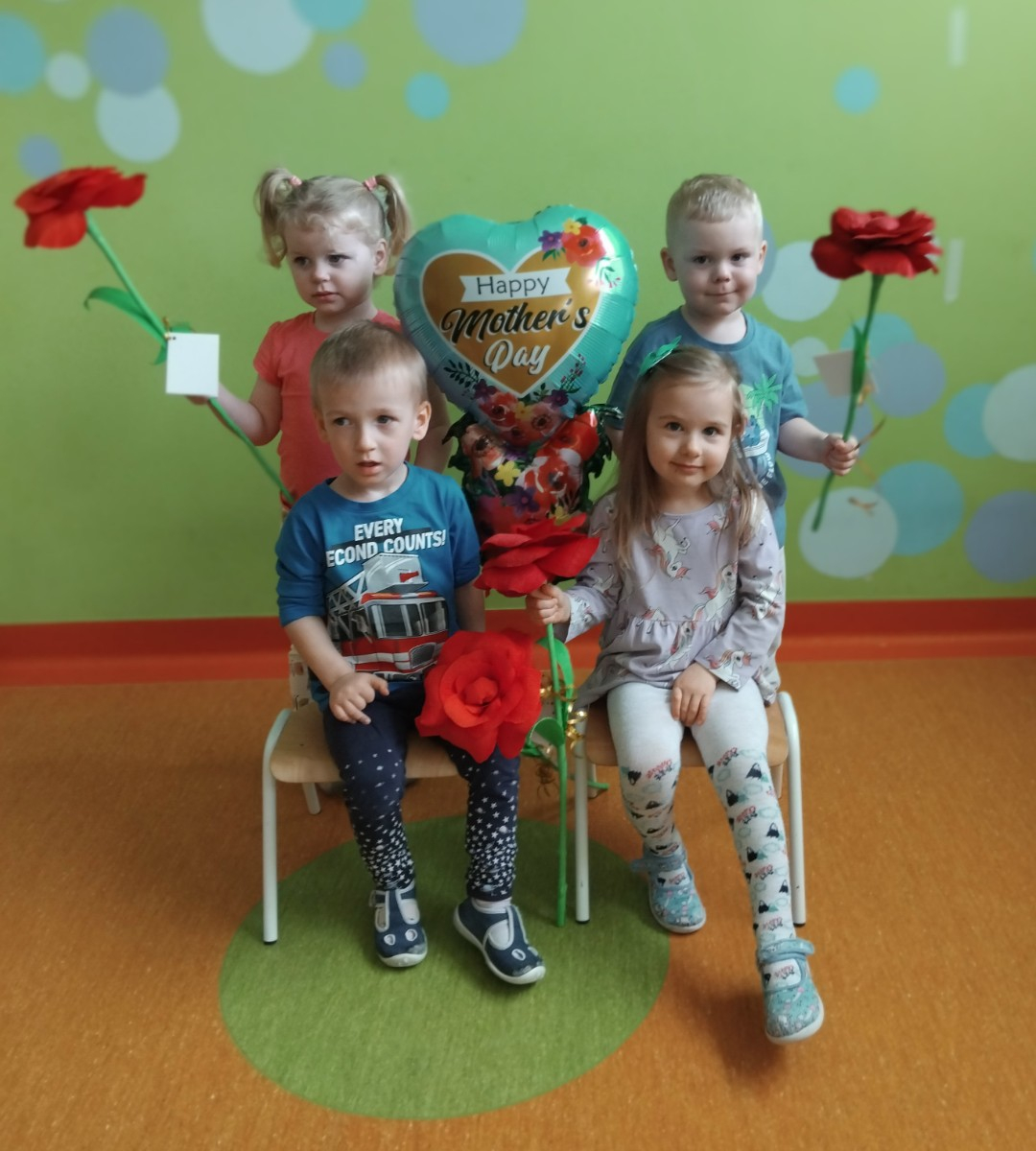26 maja to najważniejszy dzień w roku dla każdego dziecka. Tego dnia swoje święto obchodzą wszystkie mamy. Z tej okazji nasze Rybki chcąc pokazać jak bardzo kochają swoje mamusie nauczyły się wiersza pt"Moja mama", wykonały pracę plastyczną oraz przy pomocy opiekunek zrobiły piękne kwiaty z krepiny, które wręczały osobiście swoim mamom wraz ze słodkim całuskiem. Dzień ten upłynął w miłej I radosnej atmosferze.