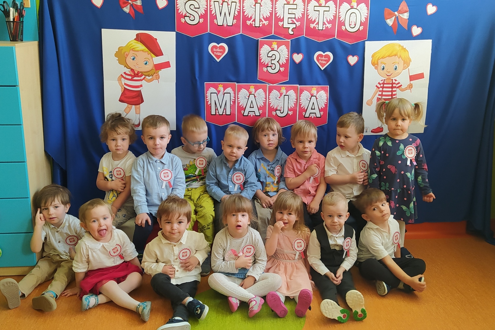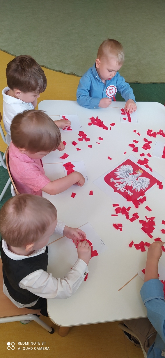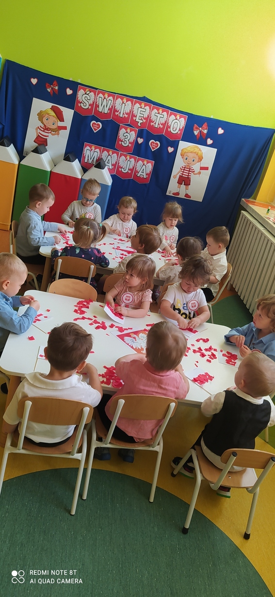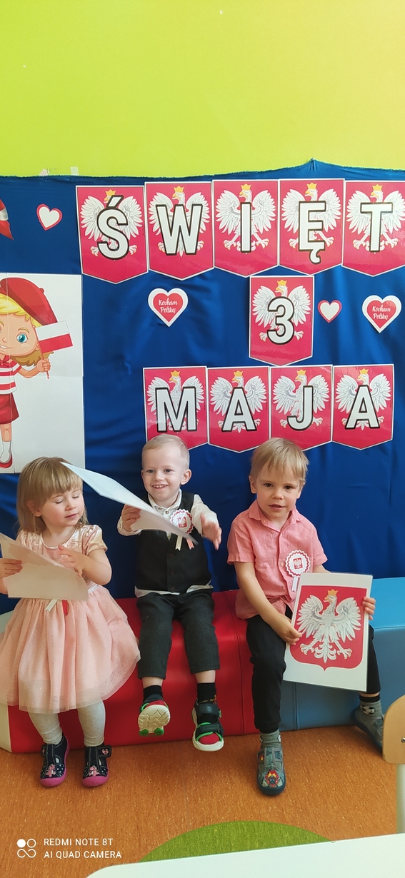 W dniu 29 kwietnia 2024r. obchodziliśmy w naszym Żłobku święto uchwalenia Konstytucji 3 Maja. W tak ważnym dniu Dzieci prezentowały się niezwykle uroczyście w galowych strojach. Podkreślając wagę naszych symboli narodowych: Godła, Flagi, Hymnu oraz znaczenia Ojczyzny w naszym życiu - dzieci wysłuchały Hymn Polski „Mazurek Dąbrowskiego." Grupa ,,Rybki" wykonała własnoręcznie biało czerwone flagi. Było przepięknie, wzruszająco i uroczyście. Wszyscy przeżyli lekcję patriotyzmu i miłości do kraju ojczystego, która na długo pozostanie w pamięci naszych „Małych Polaków".