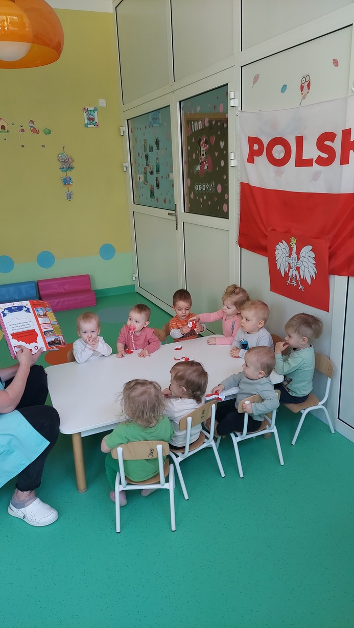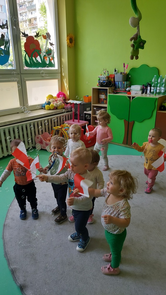 Święta Pracy, Dnia Flagi i Konstytucji 3Maja, dzieci z grupy Misie już parę dni wcześniej, miały okazję do wysłuchania krótkiej pogadanki, aby przekazać im wartości patriotyczne: miłość do ojczyzny, pielęgnowanie tradycji oraz, poszanowanie symboli narodowych. Na koniec wszystkie dzieci wysłuchały Hymnu Polskiego, i bawiły się przy piosenkach patriotycznych.