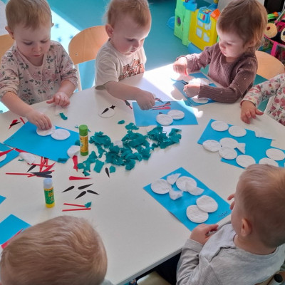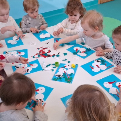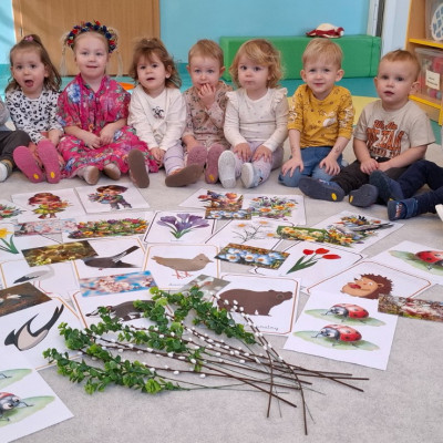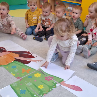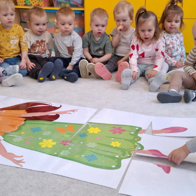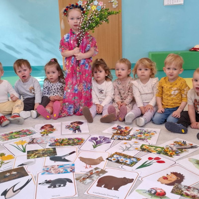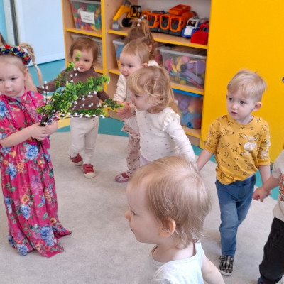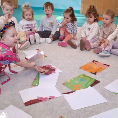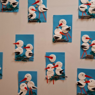 Dzisiaj dzieci z grupy drugiej świętowały nadejście Wiosny. Rozpoczęliśmy od rozmów o nowej porze roku oraz oglądaniu obrazków przedstawiających oznaki wiosny. Dzieci próbowały również ułożyć panią Wiosnę z puzzli oraz tańczyć wokół niej. Wspólnie z pomocą opiekunek dzieci wykonały pracę plastyczną pt. ,,Rodzina bocianów''. Wiele radości i uśmiechu towarzyszyło dzieciom w tym dniu.